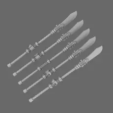 Come check out our Cyber Samurai Electro Naginata. These come with intricate 3D designs that make painting a breeze. This item is a polearm and one of several varieties of traditionally made Japanese blades. This set includes five versions: two left-handed poses, two right-handed poses, and a polearm with no hands. This product is suitable for your favorite 28mm scale models of Grim Dark-themed Superhuman Armored Warrior of Humanity. This design is made to go on arms without existing shoulder pads. This .stl is provided unsupported. This item is available as a printed item or a digital one.