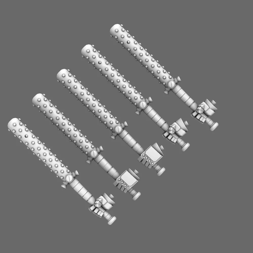 Does the call of Bushido cry out to your squad? Check out our Cyber Samurai Tetsubo Weapon. The Tetsubo is a Japanese war club used by the strongest samurai and is often associated with the mythical oni. This pack comes with both gripped and separate tetsubo weapons. Each hand comes with both straight and angled grips.