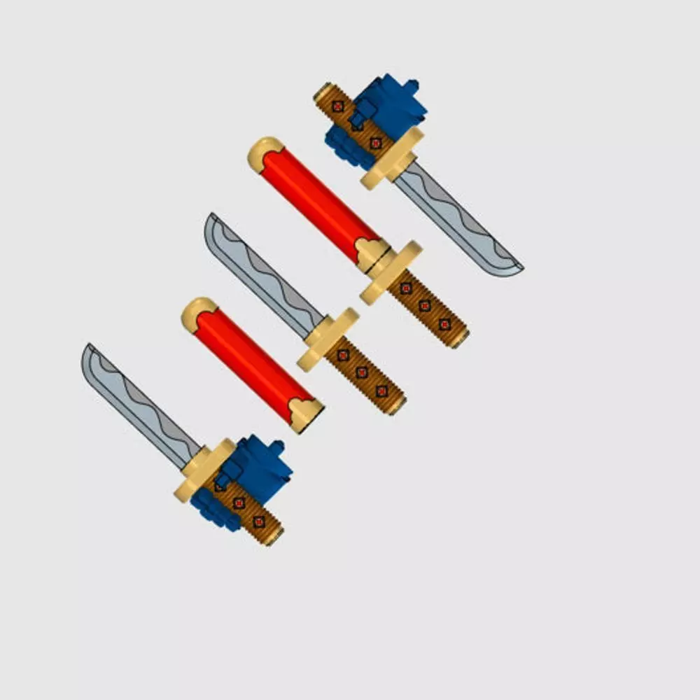 Does the call of Bushido cry out to your squad? Check out our Cyber Samurai Tanto Style Knife Set. This pack comes with sheathed, unsheathed, and stand-alone knives, as well as two different gripped knife poses.