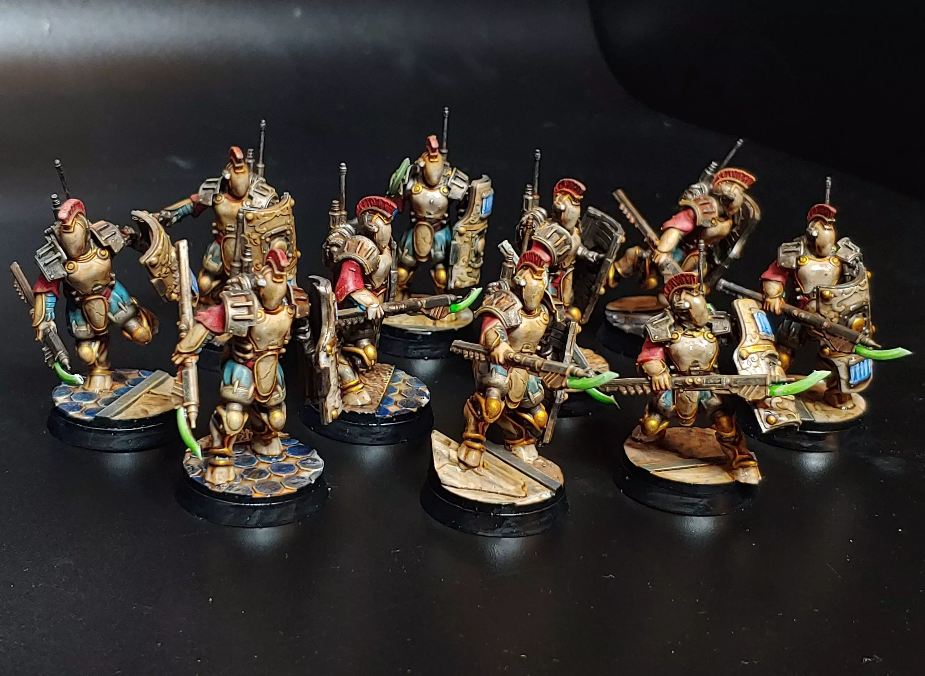 Faction LoreThe Fabricarii Houses:The Noble houses fabricar are, perhaps, the most technologically advanced society on terra. Many are their illustrious halls of devices, radiant in ancient gold and marble.In war only a very few organic beings are ever seen, the majority of their hosts seeming to be living statues, or great engines emitting deadly light.In truth the Fabricarii are a decadent society in decline, their numbers ever dwindling, and their self importance preventing them from seeing even their greatest flaws.