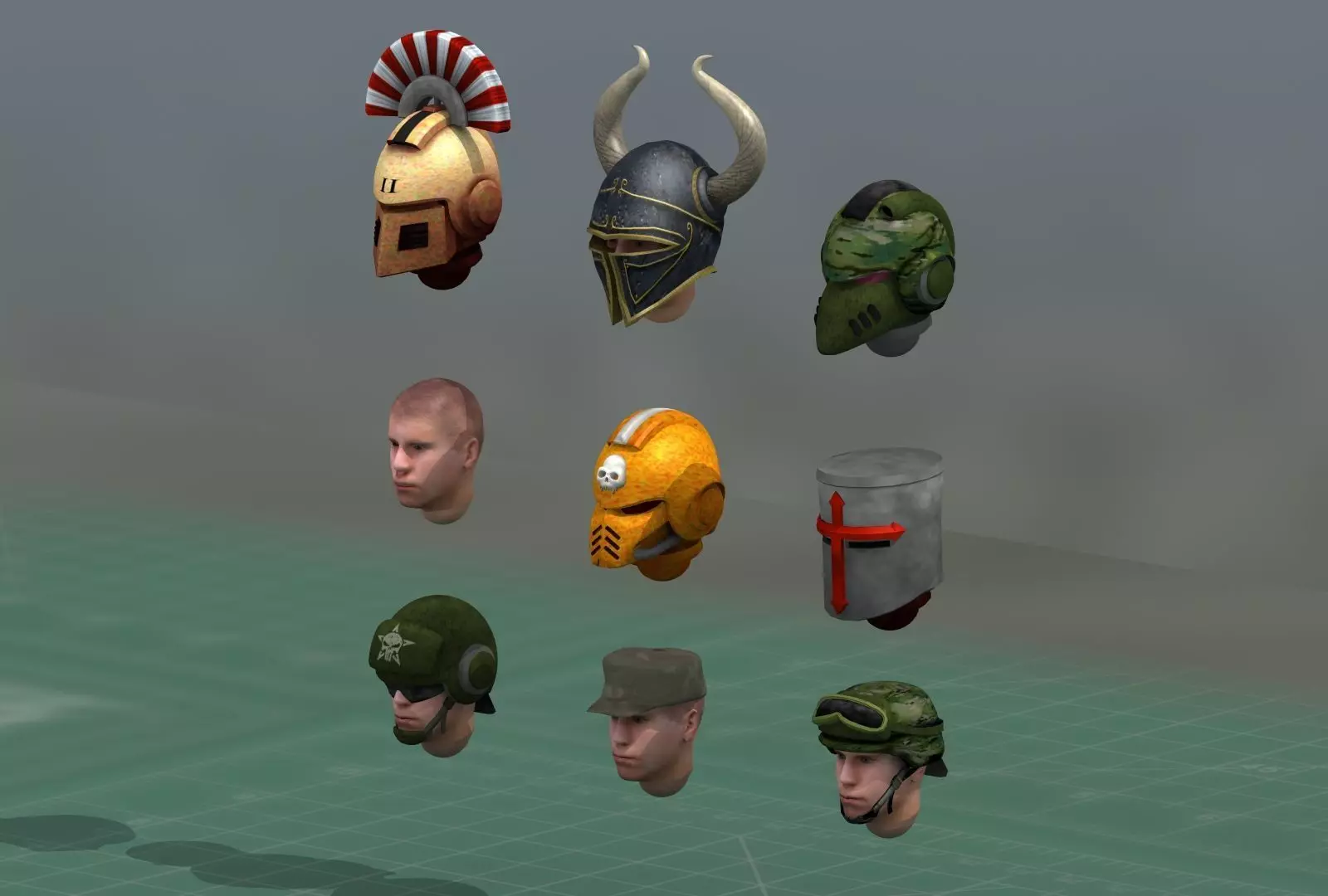 Grimdark Miniature TTRPG Helmets and Heads 3D Print Model Collection