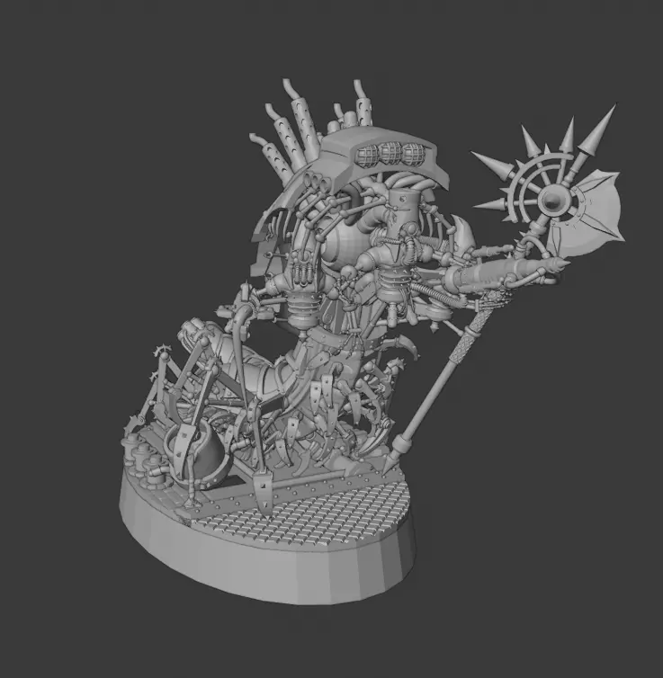 A heretical tech priest model. A merging of three crazed tech worshipping heretics into a large centipede like machine.
