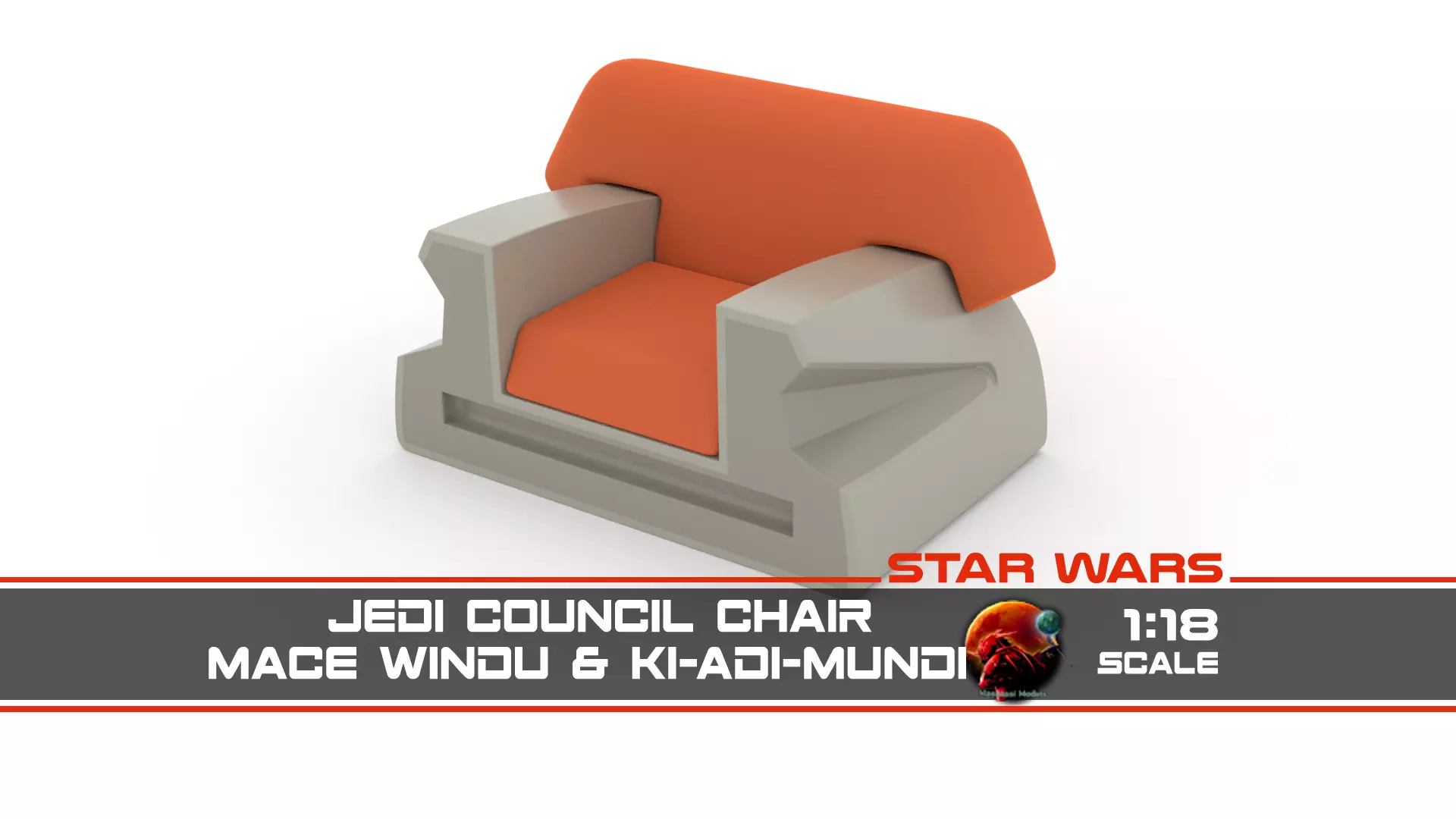 This chair can be seen in the first 3 Star Wars movies, when de Jedi Council comes together. This chair is used by Mace Windu and Ki-Adi-Mundi. This chair is also used by Obi-Wan when he became a Jedi Knight. Its an easy print with one step to assemble.
