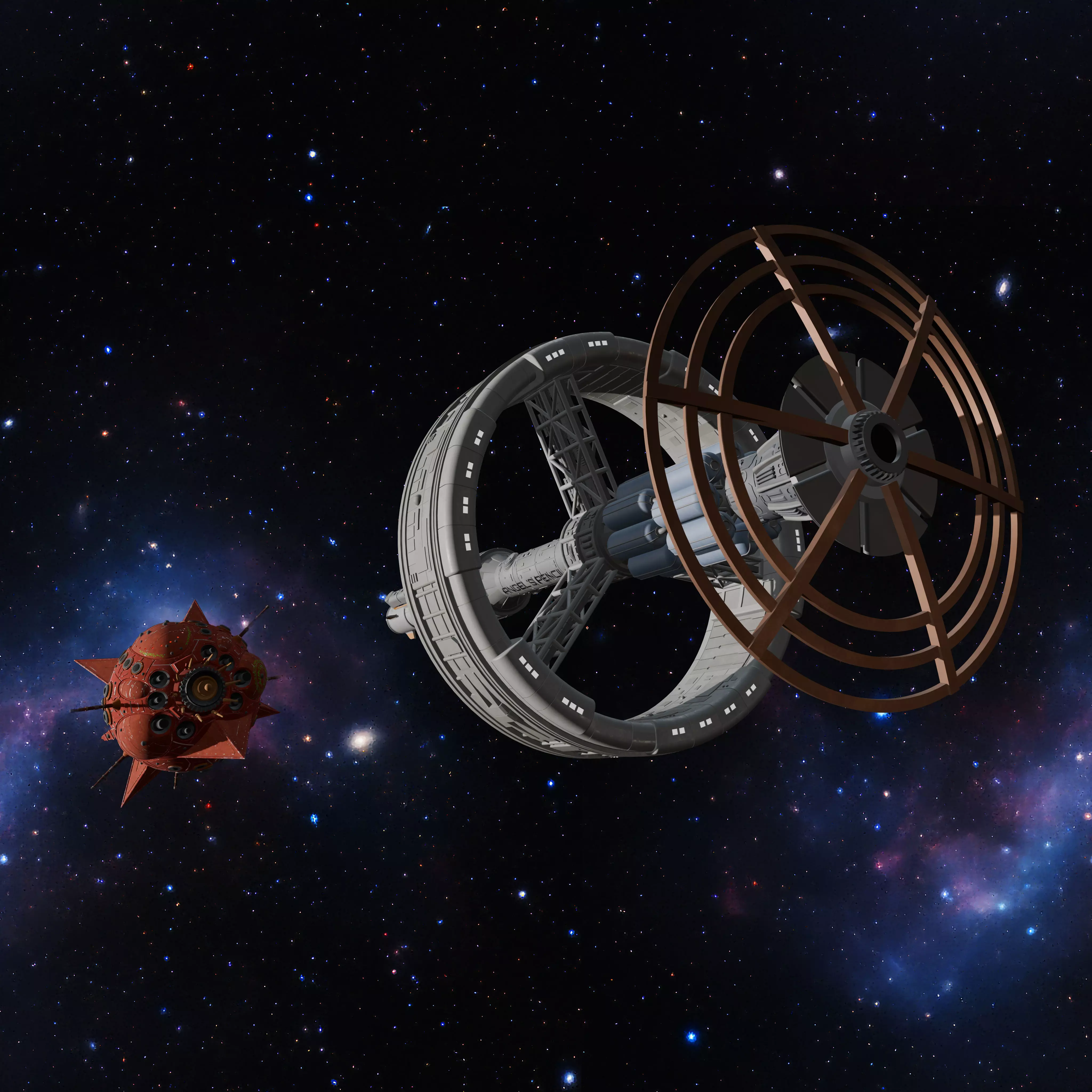 In designing the ships, I tried to stick to the descriptions given in the book as closely as possible, while making them as interesting as I could. They not only had to look right, but had to feel right for their roles in the story. The alien ship is bristling with weapons, and looks like it would hurt just to touch it, while the human ship looks harmless and peaceful. Why did I put the Angel's hydrogen ramscoop in the back, instead of the front where you would expect it? Simply because the story mentioned a finned craft at the nose of the ship, right where a ramscoop would traditionally be. The text never described the scoop itself, just that it had one, so there's a chance for some unusual engineering. The dish could project a vast electromagnetic field to guide stray atoms into the horn-like structures at the hub of the dish, while protecting the body of the ship at the axis. The concept of ramscoops were common in science fiction until scientists supposed that such a thing would introduce drag, so might not be worth the effort, depending on the situation, so it's one of those retro sci-fi tropes that turned out to be impractical. But it's there in the story, and it needed to be represented in the model. The Kzinti ship doesn't have engines in the traditional sense, which was an important point brought up in the story. It's method of propulsion is a 'gravity planer', and who knows what that could possibly look like? So an interesting array of fins and spires ought to do. The Angel's engine is a colossal laser, and when presented with the alien threat, I think you can see where this story is going.