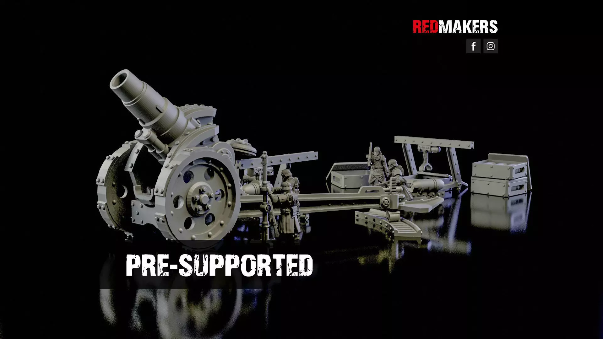 The heavy cannon consists of 21 parts. Also, in the package there are 5 gunners and other decorations. Scaled for 28 mm tabletop.