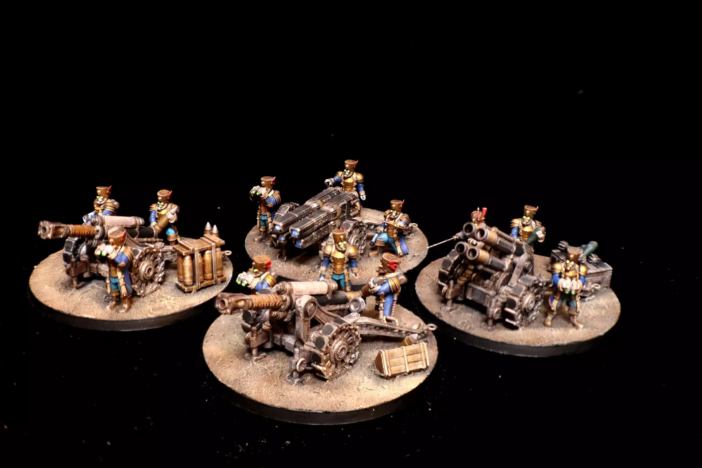 This team of field gunners can be assembled in one of three configurations. Cannon, Quad mortar, and heavy laser.