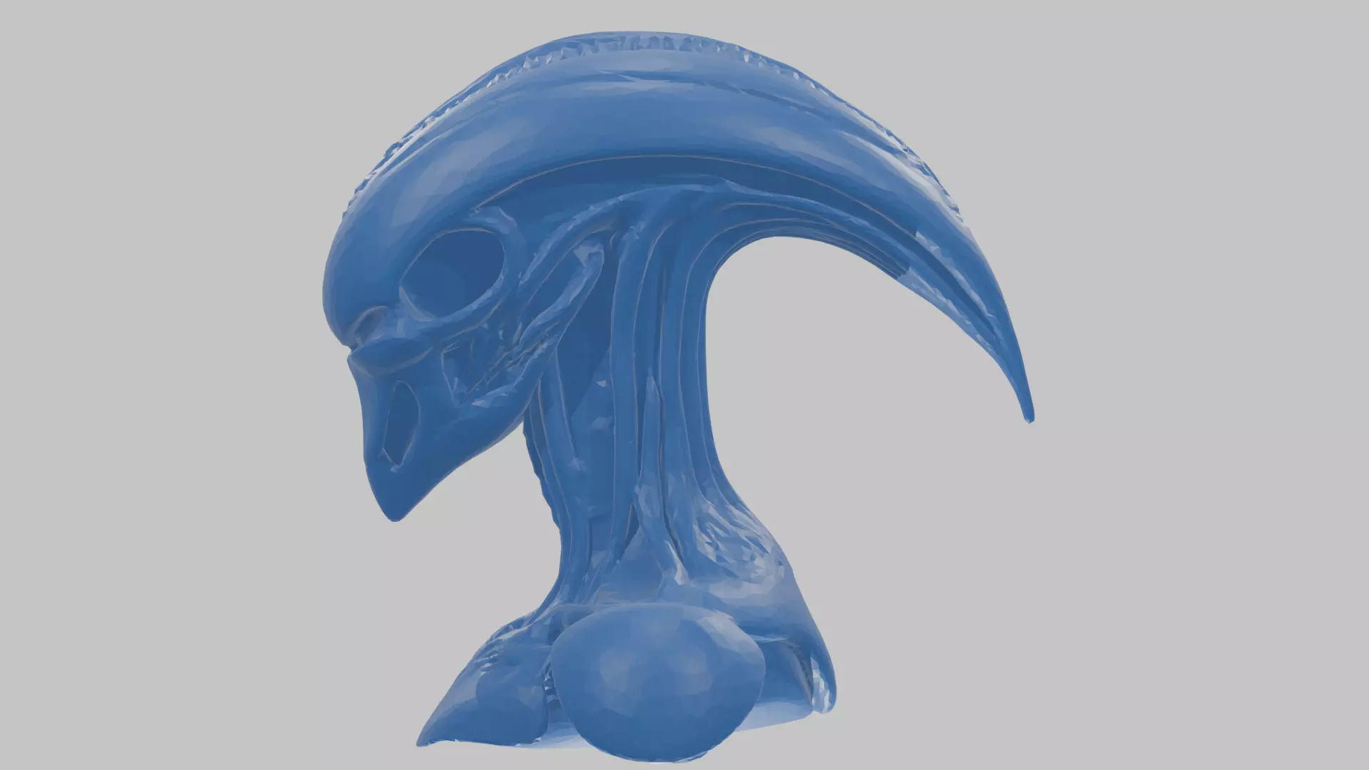 - This bust is a unique, detailed interpretation of an alien figure, blending H.R. Giger’s iconic biomechanical style with a modern 3D design style.