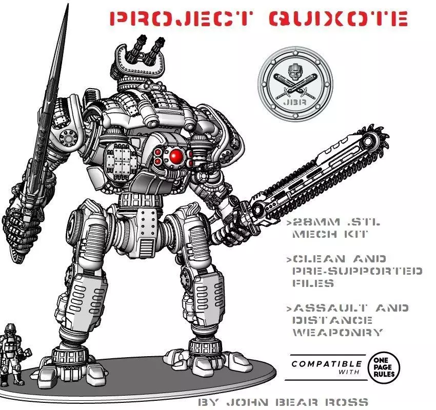 JBR here. Project Quixote was my concept of a modular stl design upon which I could hang all my free Questing Knight weapons, along with my paid factory upgrade files like Project Maggie, Project Styx, and Project Abby.