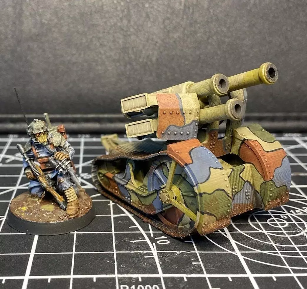 Lore: During the centennial clearing of the STC archives on Renault, an ancient template was found date from the '80s (40,080s). Records are partially destroyed, but it seems this STC had originally been acquired by Renault from an ab-human race known as the squirts. An intense minok infestation had destroyed the portion of the STC describing the self-propelled gun carriage, but instruction for the weapon itself, called Thump Gun, was able to be recovered. Fortunately, the factory-world of Renault produced its own semi-autonomous self-propelled gun carriage!