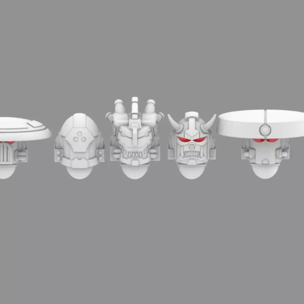 Does the call of Bushido cry out to your squad? Check out our Rising Death Sun Clan V10 Primus Veteran Helmet set for normal marine power armor is meant to replace the standard head of your favorite 28mm marine model. The helmet set provides you with five different variations of the helmet to make your troop look unique. You will get multiple copies of our dragon helmet, oni helmet, tactical helmet, and two variants of the Jingasa-style helmets.