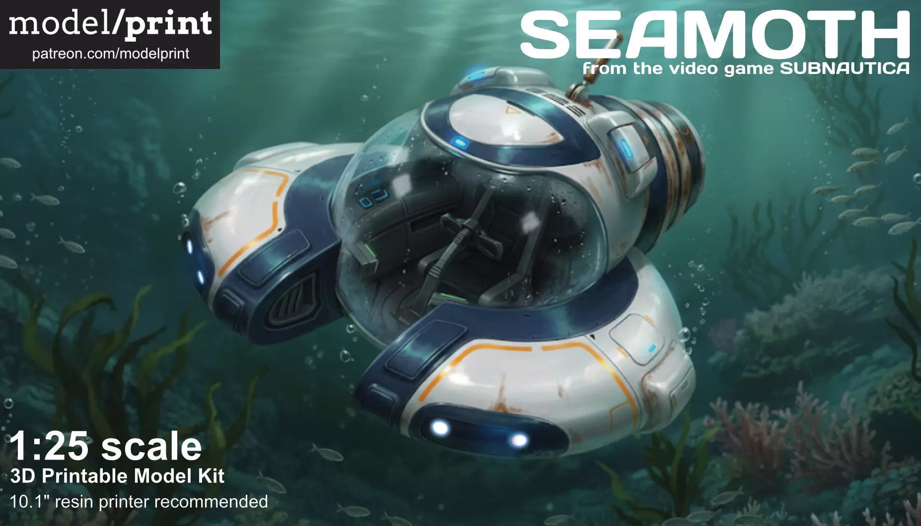 Ready to add a Seamoth to your collection? This 1:25 scale kit is designed for builders who love detail, featuring light-ready internals and the master parts needed to create your own clear vacuform canopy.