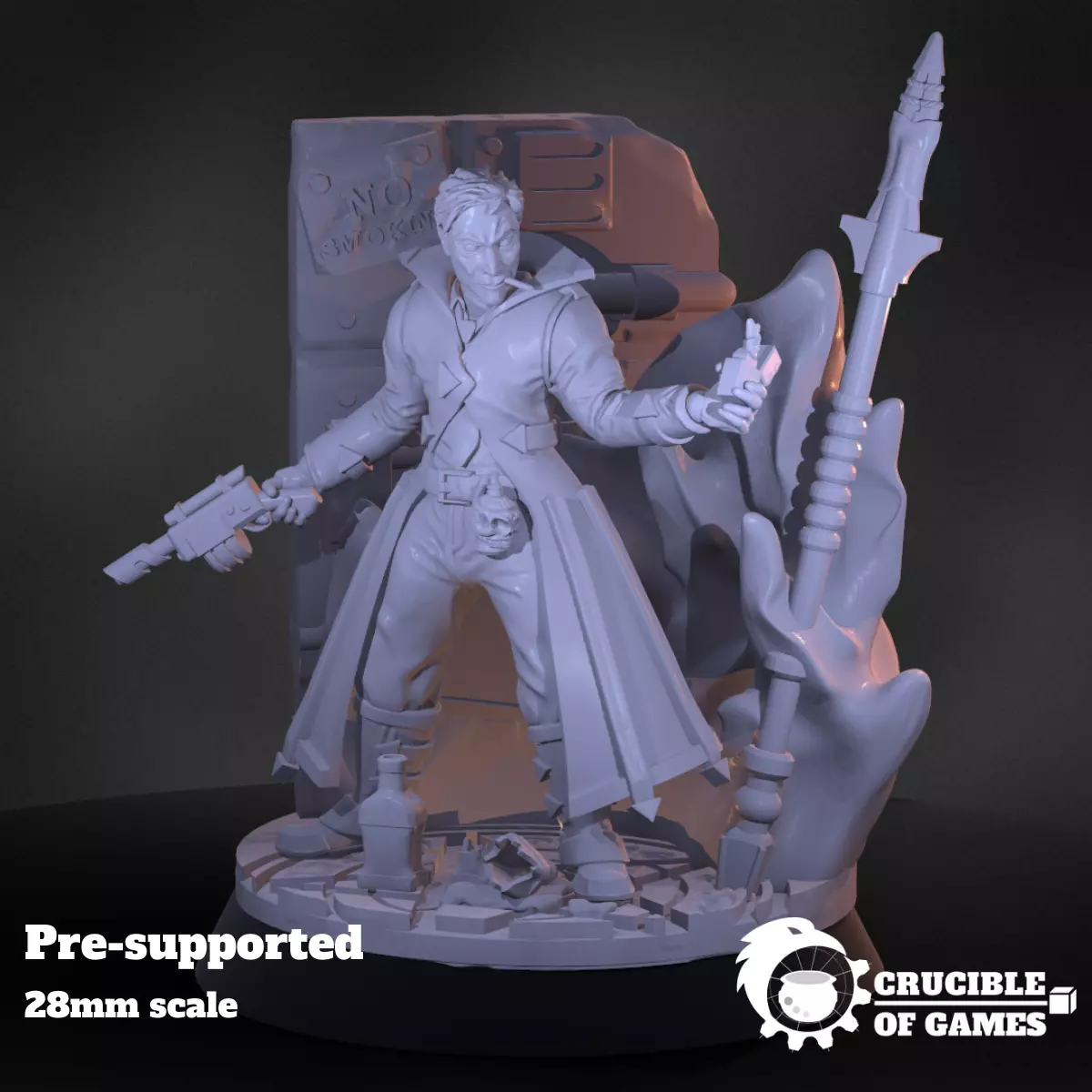 Heavily influenced by a famous comic character, Soultorcher is actually a representation of how John Constantine would look in a sci-fi grimdark setting:)I believe that he would be a good addition to your skirmish ganger parties as a freelancer or a psionic HQ for bigger sci-fi wargames:)