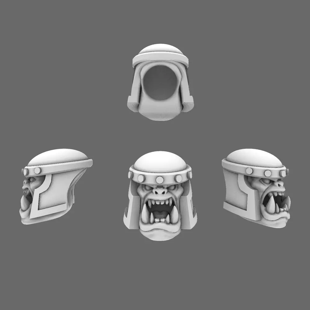 Check out our Space Orcs Lads Bucket Heads. These feature chunky, high-contrast 3D details that make painting a breeze. Perfect for any 28mm tabletop army of space-faring orcs, marauding greenskins, and other war-clan brutes ready to rumble across the stars.