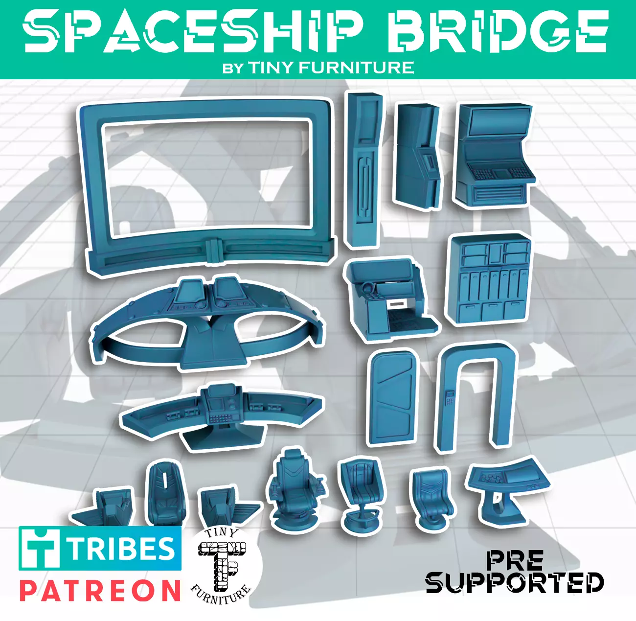 Control panels – Packed with buttons, levers, and futuristic displays for ultimate command.Crew seating – Comfortable and ready for action, because even heroes need good lumbar support.Bulkhead partitions – Define your bridge layout with sturdy sci-fi walls.Storage locker – Perfect for mission reports, star maps, or top-secret orders.Main viewport – A massive window to the stars… or whatever lurks in the void.Reinforced door – A sturdy entryway that separates the bridge from the rest of the ship.