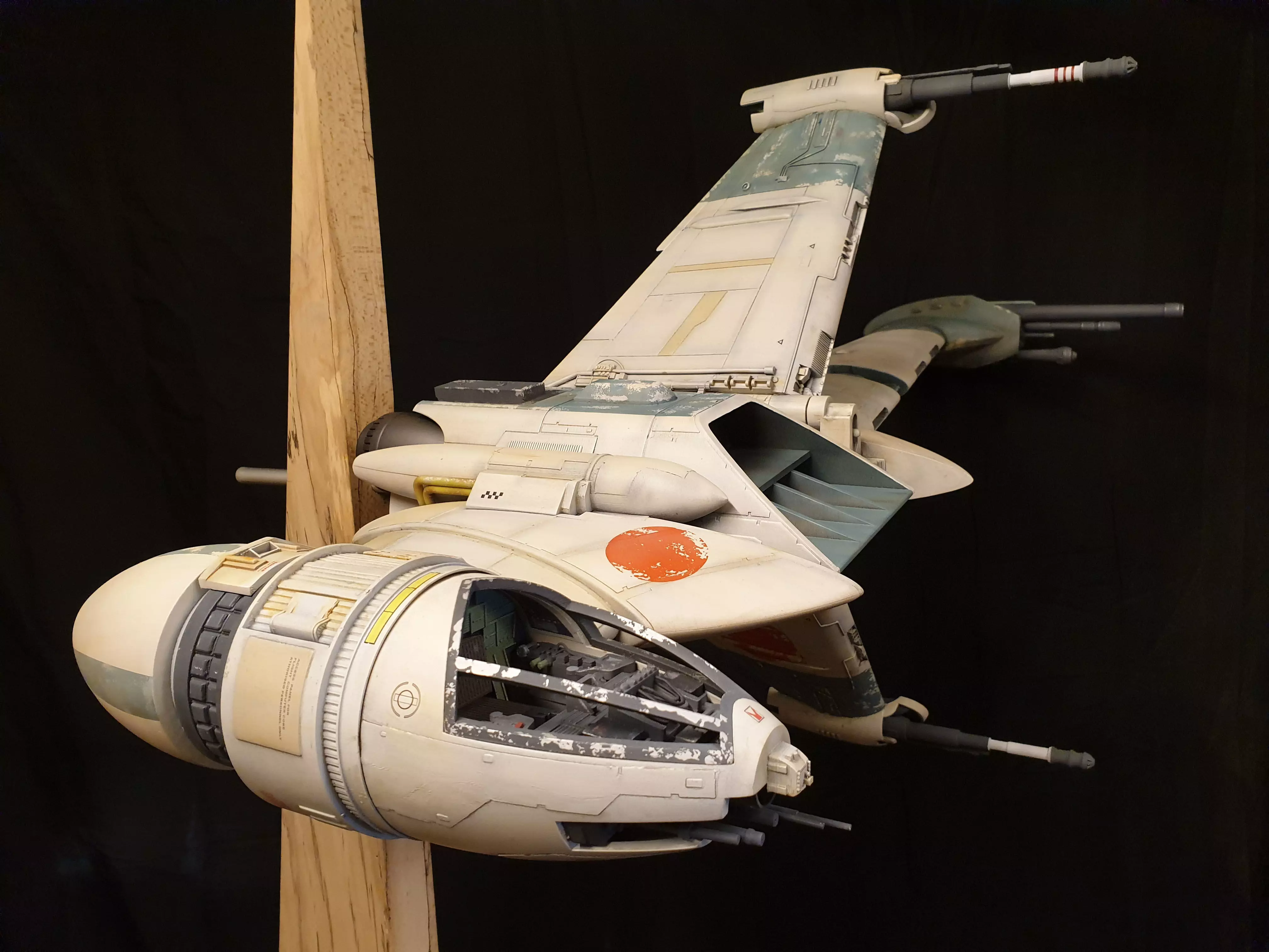 Starwars A/SF-01 B-wing starfighter. Model consists of 63 stl files, the model you see here is 1/18th scale and measures approx 1000mm long, the file were scaled up too 400% to achieve that size.all files where cut to allow parts to be printed in the best orientation for quality. the only extra needed is 16mm dia aluminium tube for the wing hinges.I also supply a Decal sheet at a cost of £10+p&p just contact me if you are interested in a sheet.wings are articulated as is the cockpit so model can be displayed in multiple orientations.included are the full model stl at 1/72 scale and a revised canopy and canopy plug for vacforming.