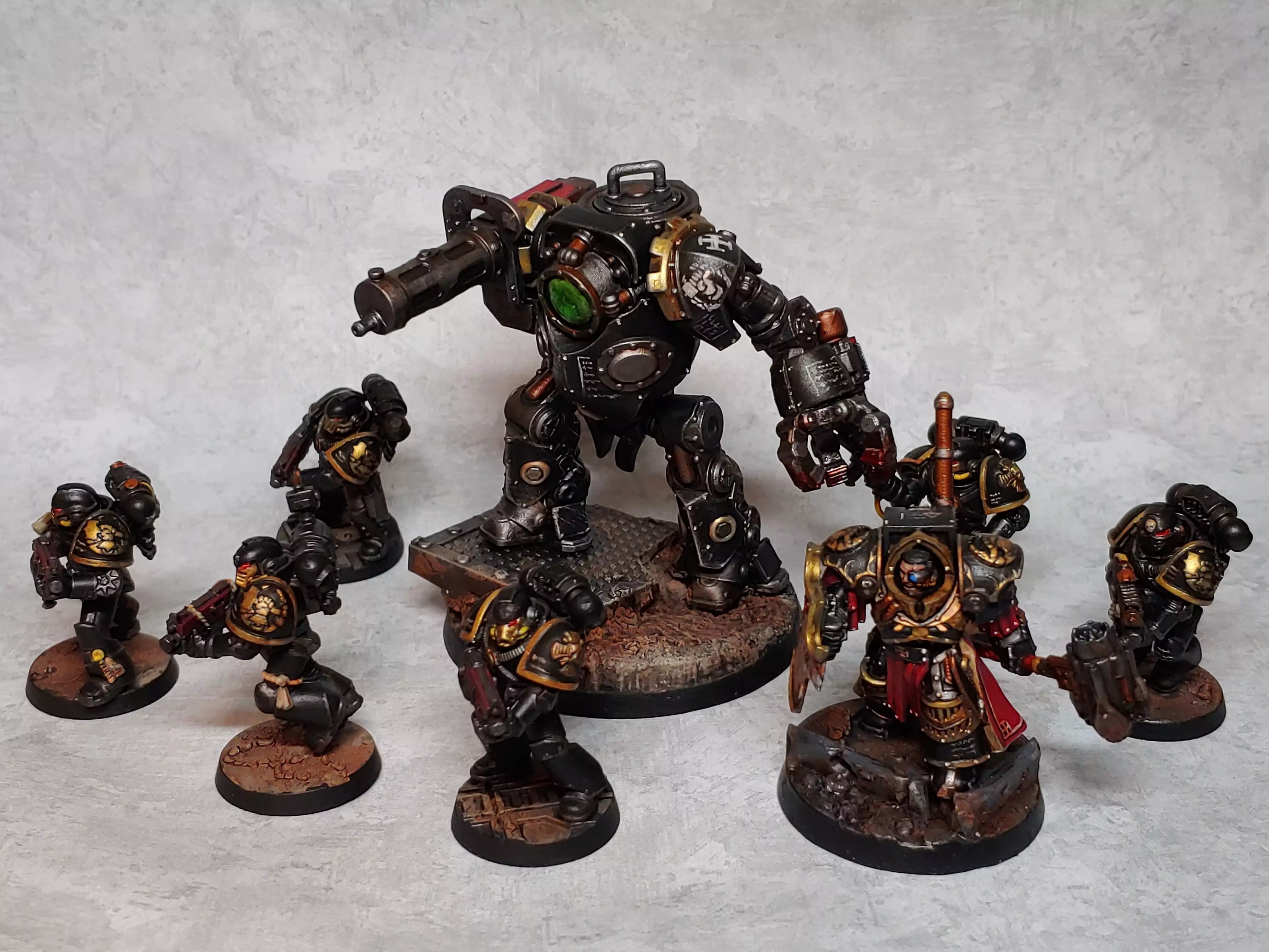 When a Tempest warror passes on or his body is seriously ingured, his servace is not at an end. If the Storm Lord demands yet more of him he will have the medics tear his brain from it's sorry shell and his mind will be fused with a juggernaut. A juggernaut is a primative construct form the darkest days of technology. Savage and violent with nerochemical injectors that reward destruction and punish failure. Juggernaut piolots do not survive long, but while they serve they are some of the most terrifying soldiers in the armies of man.