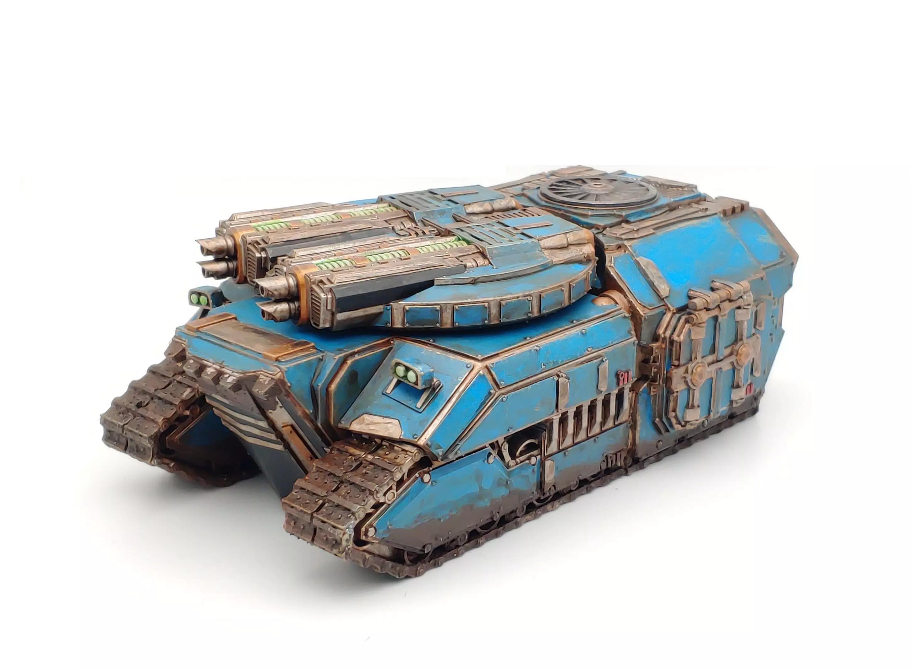 The Eomanis Armored Fighting Vehicle is primarally a close support weapons platform. Eschewing sponson mounts it instead relies on a twin-turret system in order to provide both fire support and tank hunting capacity to an assault. Inside it's cargo bay up to 6 heavy infantry or 12 light infantry can be seated, along with their wargear and additional amunition and supplies.