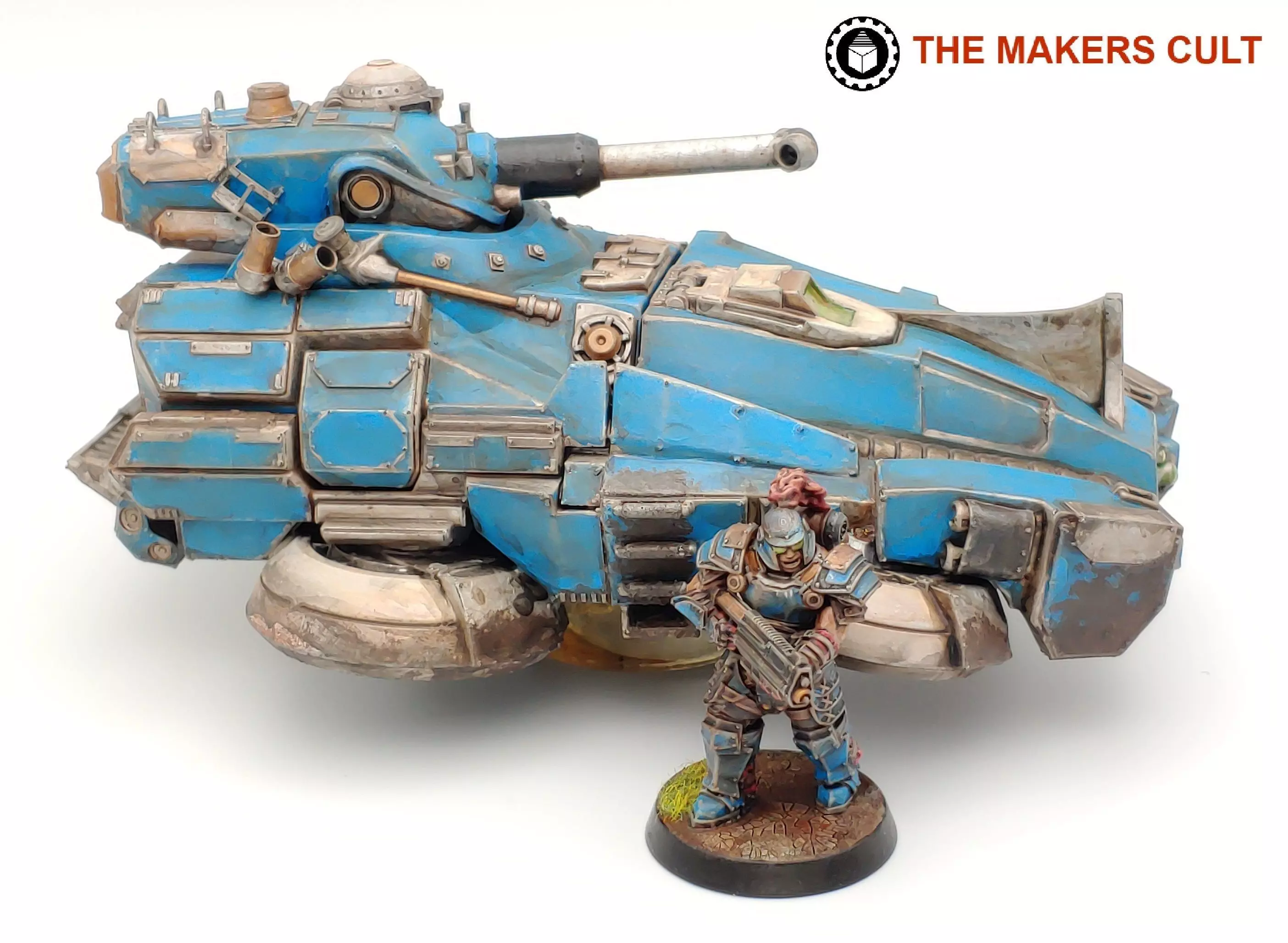 The Taurus M.C.V. is a light hovercraft that can be adapted to any needed combat role. From light tank, to transport, to cargo hauler, the Taurus is the backbone of the Tempest Legion's logistical line.The Taurus comes with three different turrets, optonal sponsons and foreward guns as well as two optional backs that can be swapped out to change it's battlefield role.
