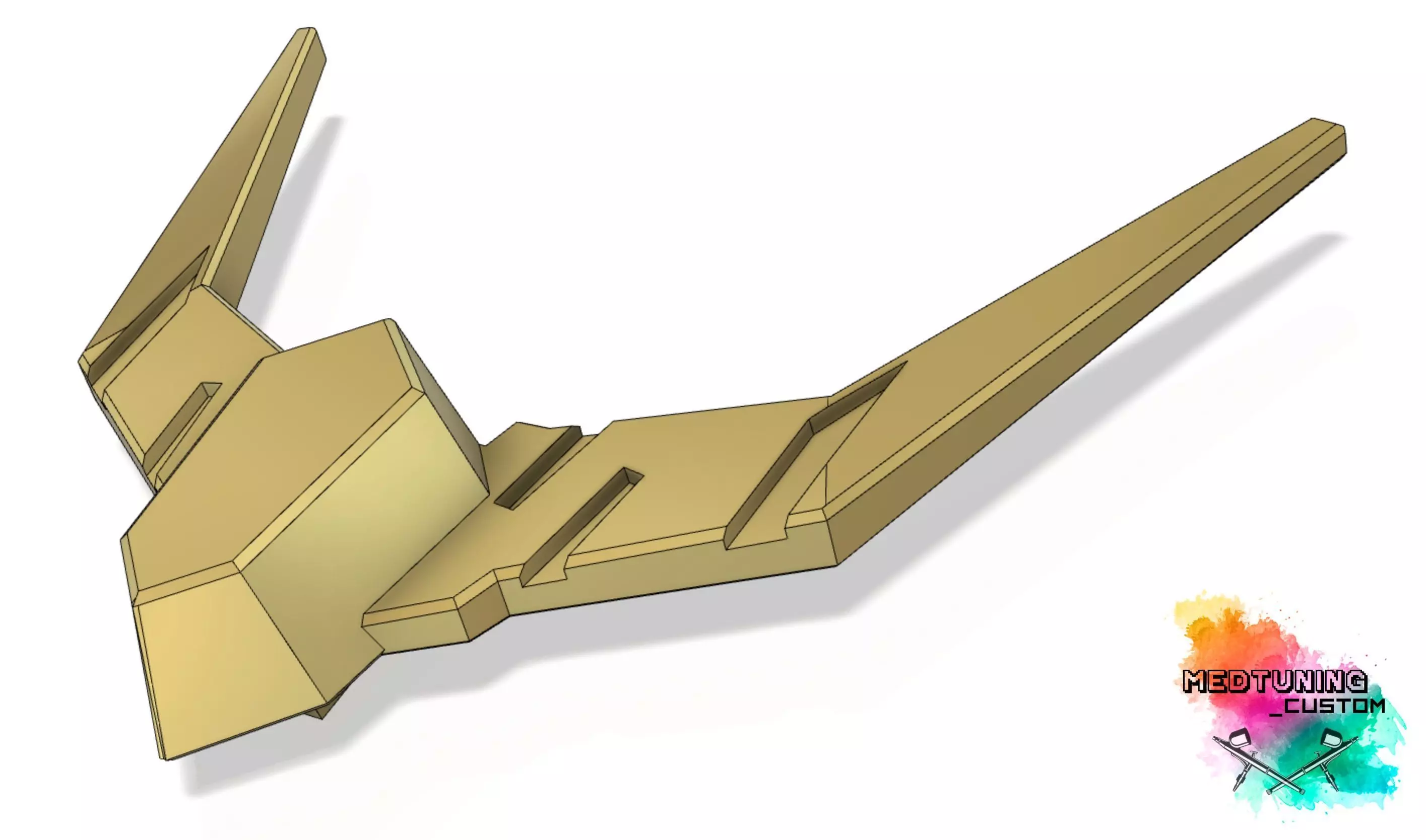 Barbatos V-fin spare part. The scale is 1/100 but can be rescaled. There is a mounting pin on the back. You may need to modify the pin, after printing, with a cutter or sandpaper. Glue is required for assembly. There are both: V-fin with support ready to be printed and without supports.