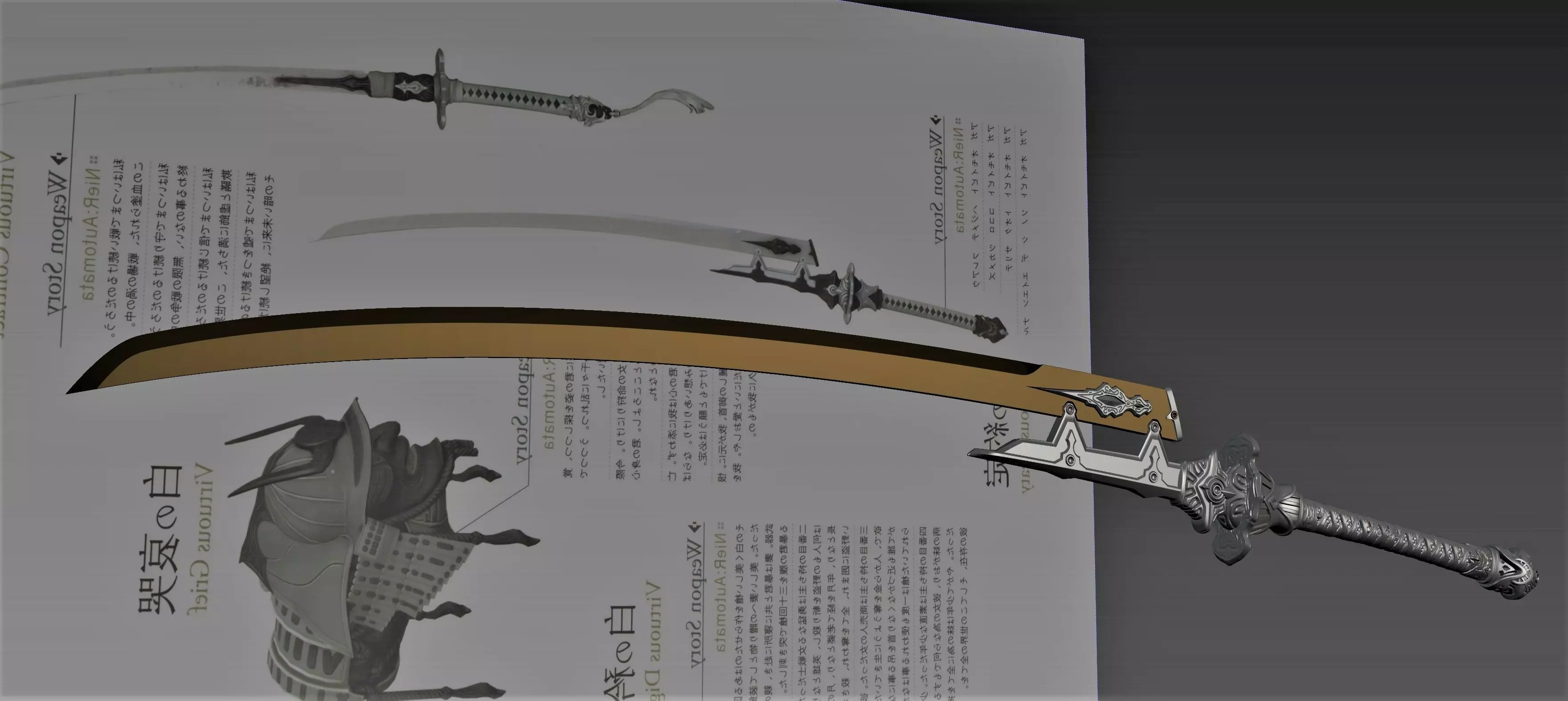 Sword used in the game Nier Automata by the android Type 9 model S, it is the same shape as the Virtuous Treaty used by Type 2 model B , this was modeled in Alias Autostudio and finished in Meshmixer in scale 1/8 for 3d print in my Resin printer Elegoo Mars