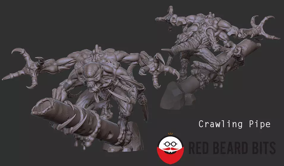 Coming from the shadows and crawling through every space are the Xenoteras Rippers (revisited). This new version of the Rippers gives you more to choose from and different positions, making them more dynamic and engaging.What you will see are 6 different poses: Crawling Pipe, Lurking Idle, Power Pose, Eating, Dodging and Running, all with and without Carapus. Each body have 6 slots that can be filled with Main Arms, Mid Arms and Talon Arms. The idea is that Main arms go on the front, Mid arms in the middle top, and Talons on the back, but they can be changed according to your taste. If you decide to do so, the Talons arms slot is a bit SMALLER, and the arms themselves too, so please take it in consideration when printing.