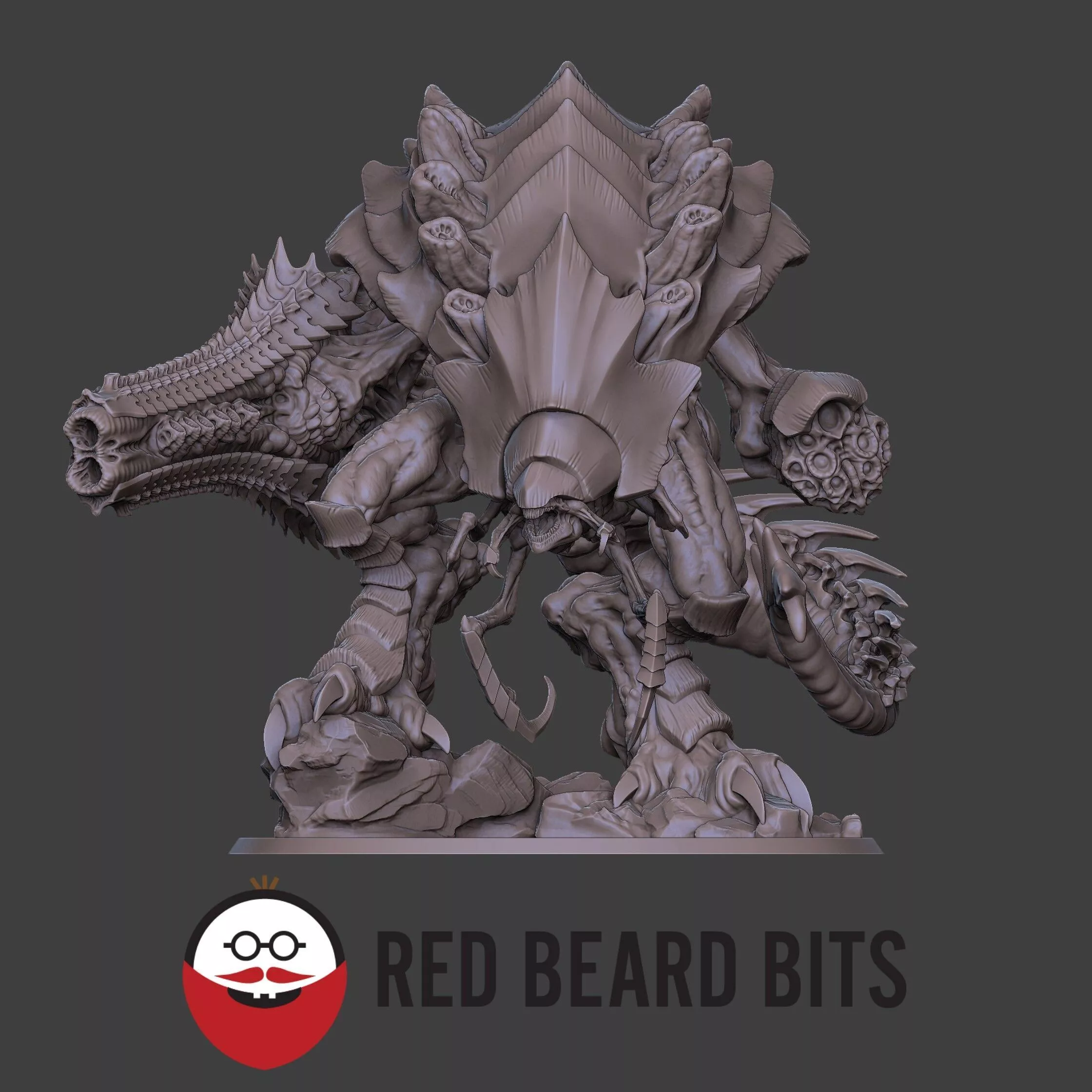 What you will see in this pack is a couple of .zip files, one containing the STLs and the Chitubox projects in the other. The pieces are split in the following: 1. Torso pieces (with and without head); 2. ARM pieces, with both weapons and FRONT ARMS, big and small that will go on the creature's chest; 3. LEGS; 4. Tail and then the base. All pieces have been supported using AUTOMATIC SUPPORTS, so I encourage you to check the pieces before printing.