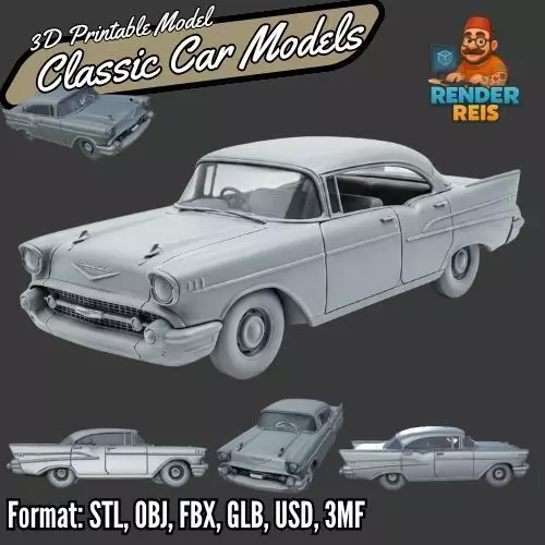 Customizable & Print-Ready:This model is available in STL, OBJ, FBX, GLB, USD, and 3MF formats, compatible with FDM and resin printers (SLA/DLP). Customize it with authentic 1950s paint jobs like turquoise-white or pink-grey, and highlight chrome areas for an authentic touch.