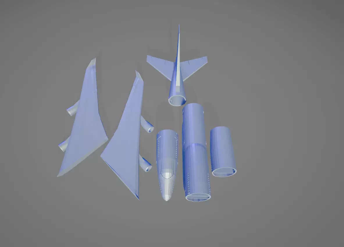 This is a modular 3D model of a wide-body commercial aircraft, designed specifically for hobbyists, scale modelers, and RC enthusiasts. The model is split into key components—fuselage sections, wings, engines, tail, and nose—making it ideal for 3D printing, assembly, and customization.