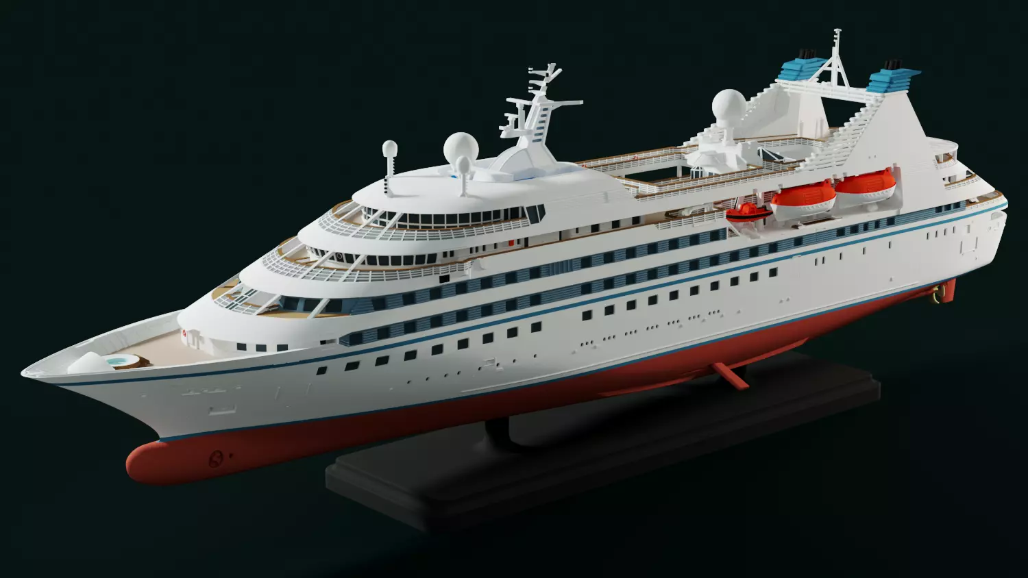 Detailed model of the cruise ship Seabourn Legend, as she used to look in the late 1990s.