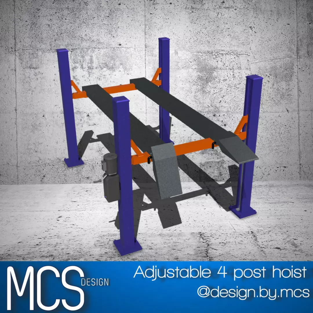 Designed from scratch is a dynamic 4-post lift high in detail, ideal for scale modeling (currently in 1/24 and 1/25 scale).