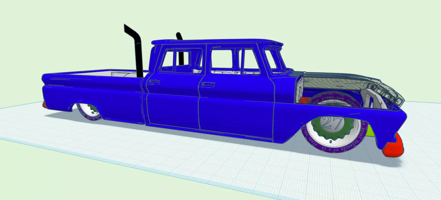 1/25th scale 65 Chevy crewcab truck add ons. These items will fit into the 3d files offered by Andrey Bezrodny, @Coachbuilder_ua, it should fit into similar trucks files he offers.