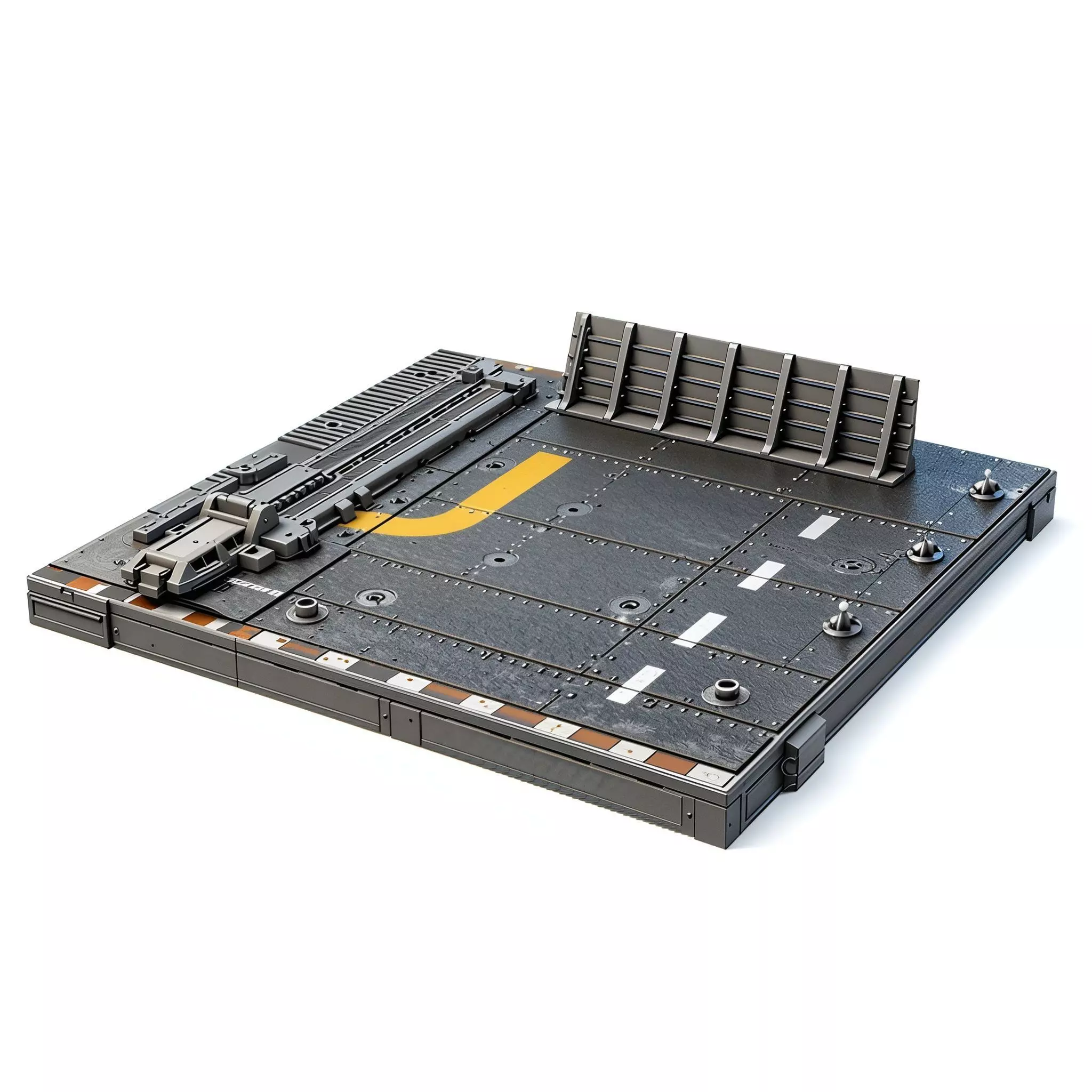 • Highly detailed aircraft carrier deck surface• Realistic anti-slip deck texture• Deck panel lines and rivets• Tie-down points integrated into the surface• Clean geometry optimized for 3D printing