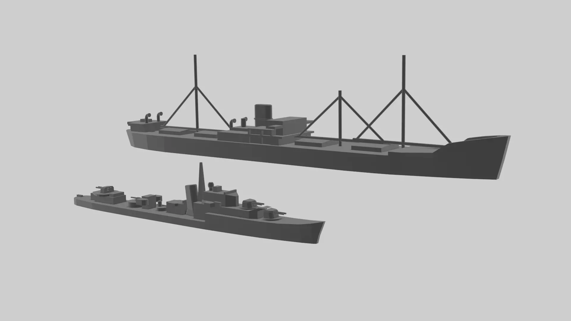 Note: This offer is a bundle consisting out of two models. I only combined them for the thumbnail shot, the models themselves are seperate, yet scaled the same. The destroyer is called J, the merchant is called modern british freighter.