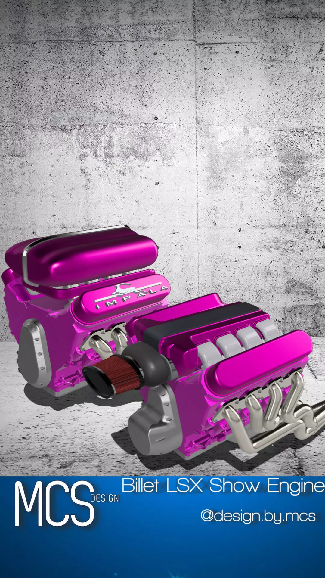 Designed from scratch is an aftermarket LSX block with a show car inspired accessories kit, with optional items, high in detail, ideal for scale modeling (currently in 1/24 and 1/25 scale).