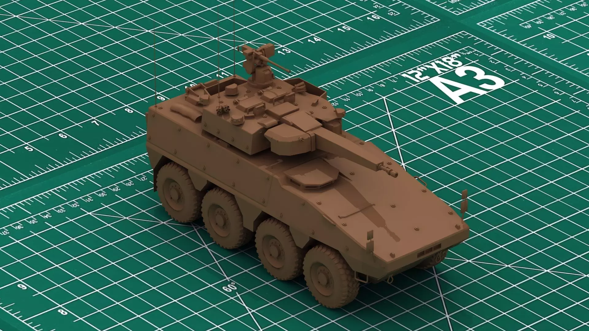 Boxer CRV 3D Print model. Item is shown painted in some illustrations. This is a 3D model print file supplied unpainted, not a physical product. File comes with optional stand.