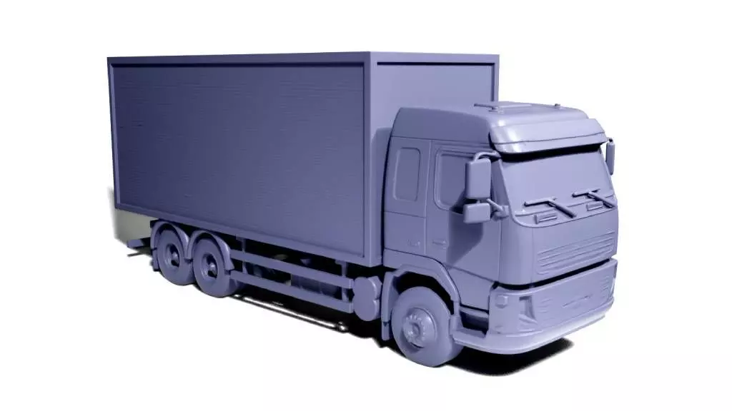 This 3D model represents a typical delivery truck, featuring realistic details suited for use in various scaled environments or miniature setups.