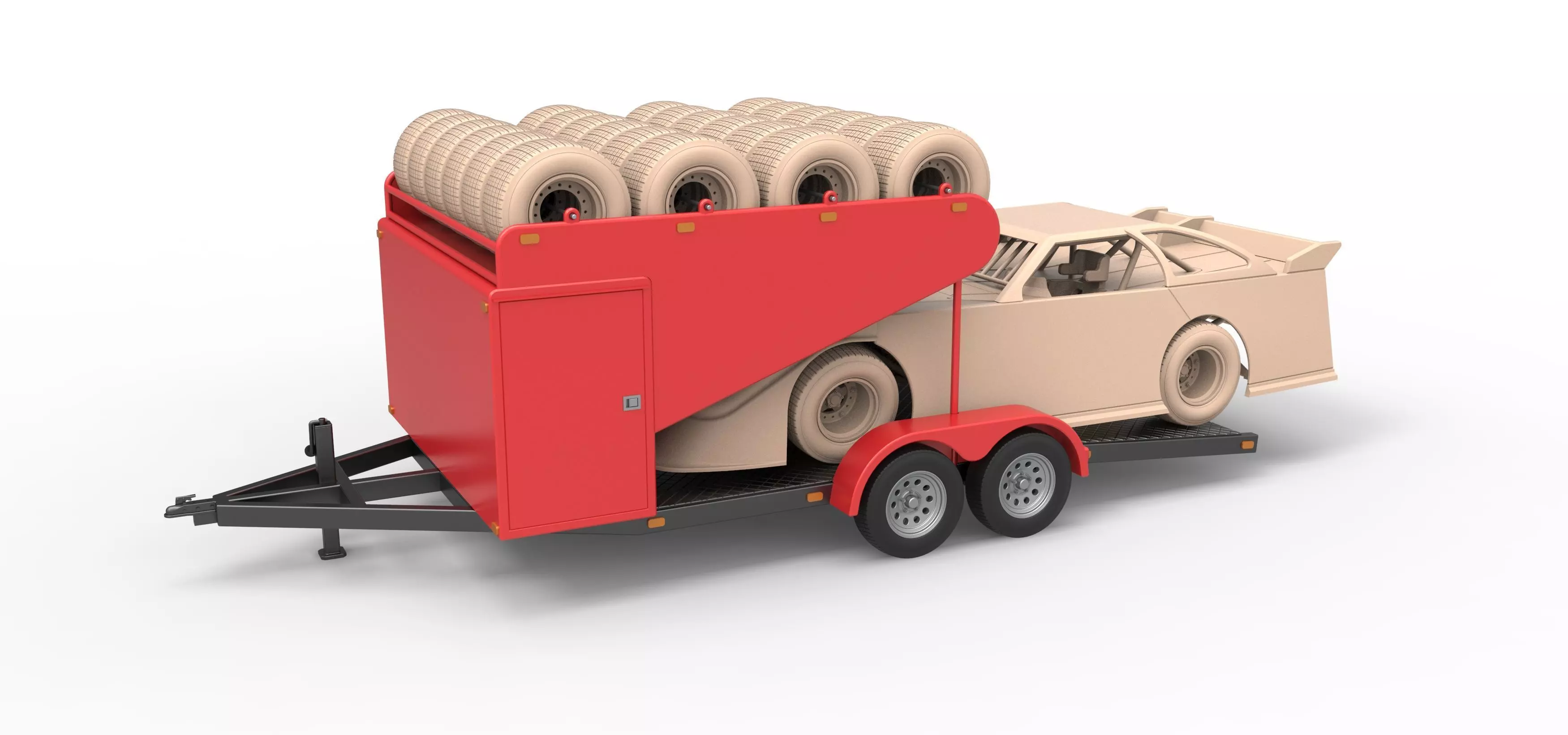 The race car and spare wheels are not included to the model.