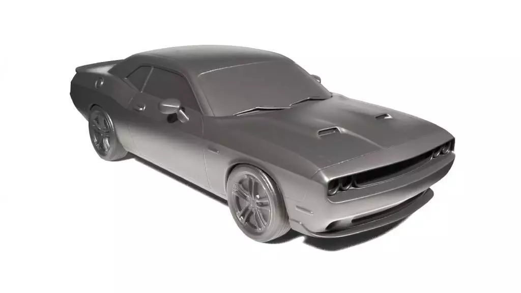 This model of a Dodge Challenger aims to capture the iconic and muscular look of the car. The design emphasizes clean lines and aerodynamic features typical of the Dodge Challenger's robust design while ensuring the details reflect its sportiness and power.
