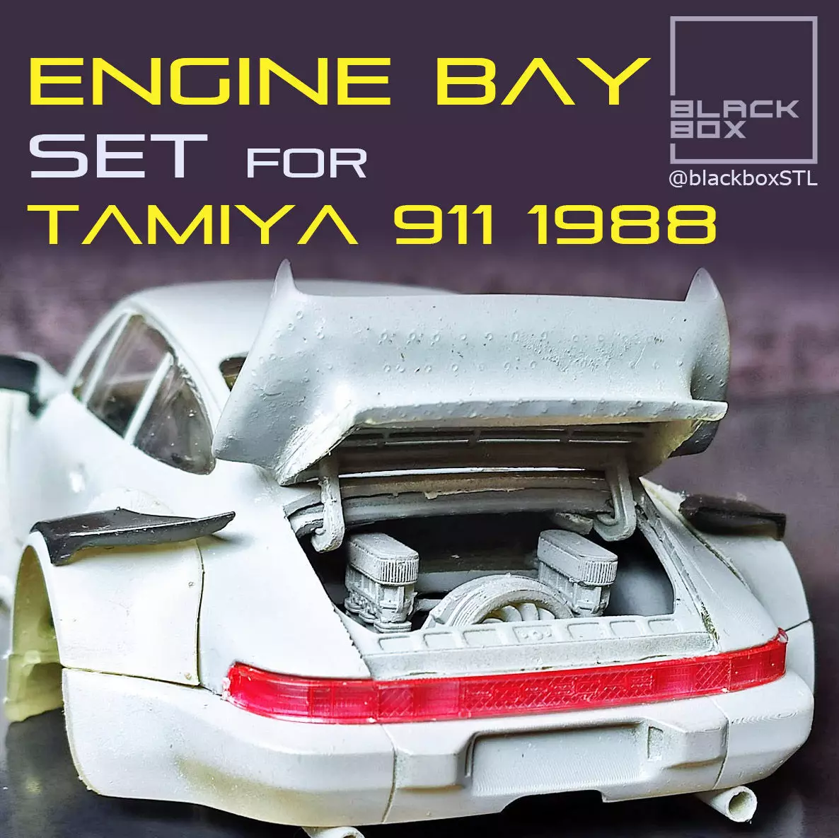 Openable Engine bay set compatible with tamiya 1988 Porsche Turbo 1/24th modelkit. Includes 2 engine cowl models.