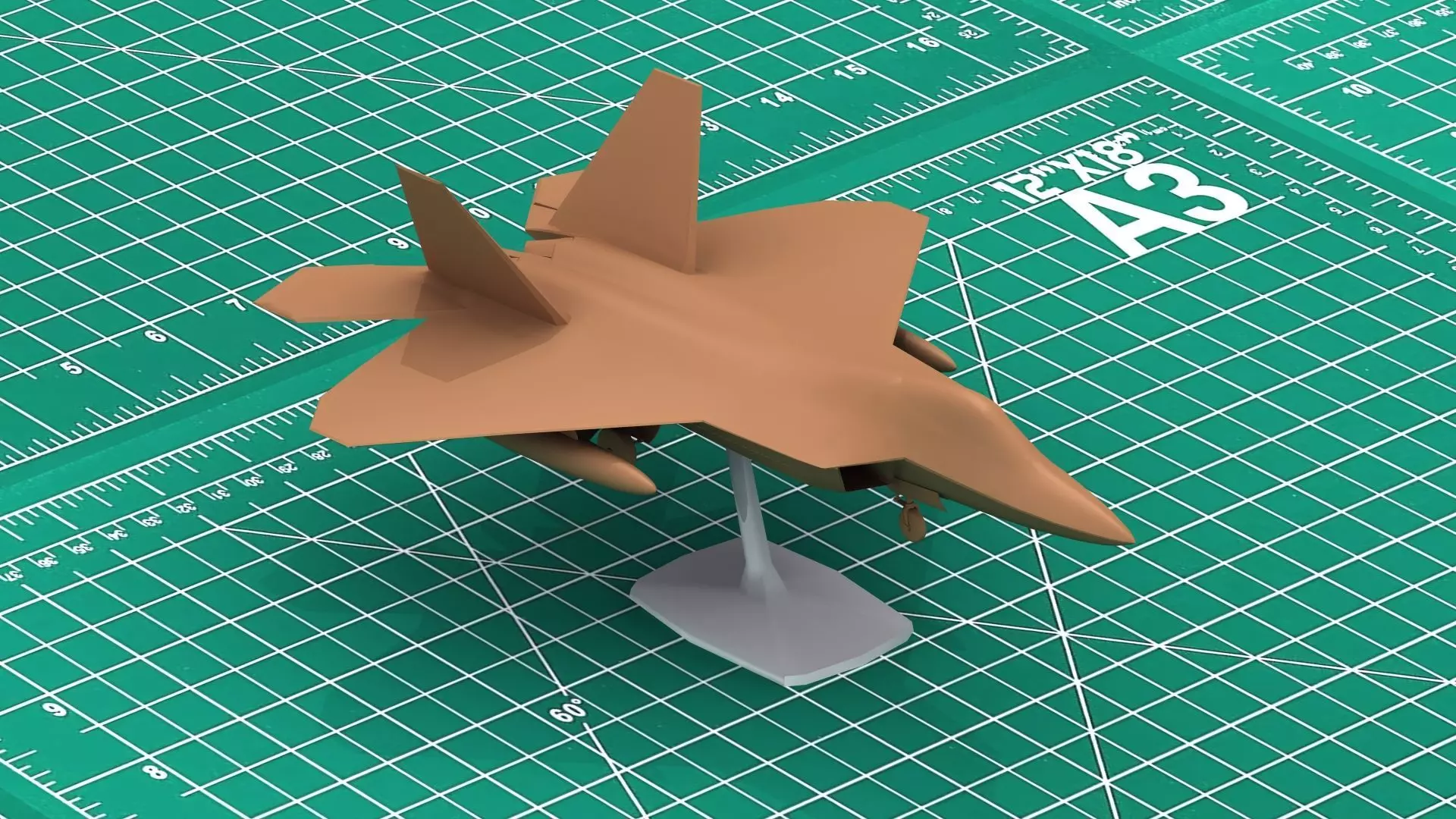 F-22 Raptor Stealth Fighter 3D Print model. Item is shown painted in some illustrations. This is a 3D model print file supplied unpainted, not a physical product. File comes with optional stand.