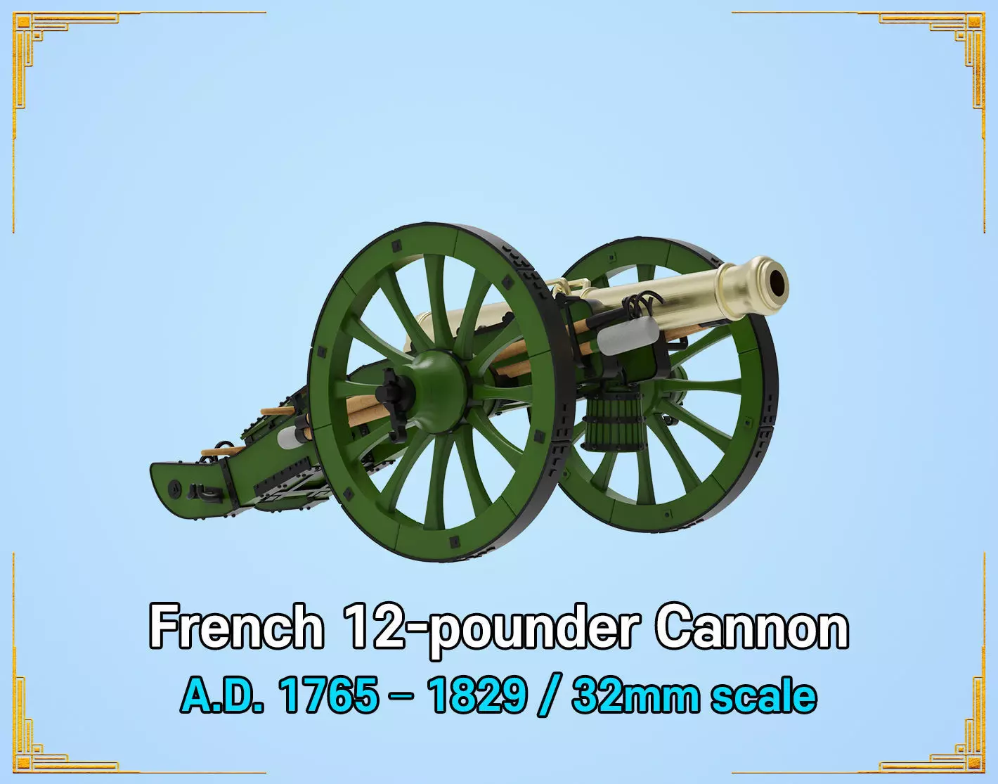 This product is a 32mm scale miniature 12-pounder field gun of the Gribeauval system.