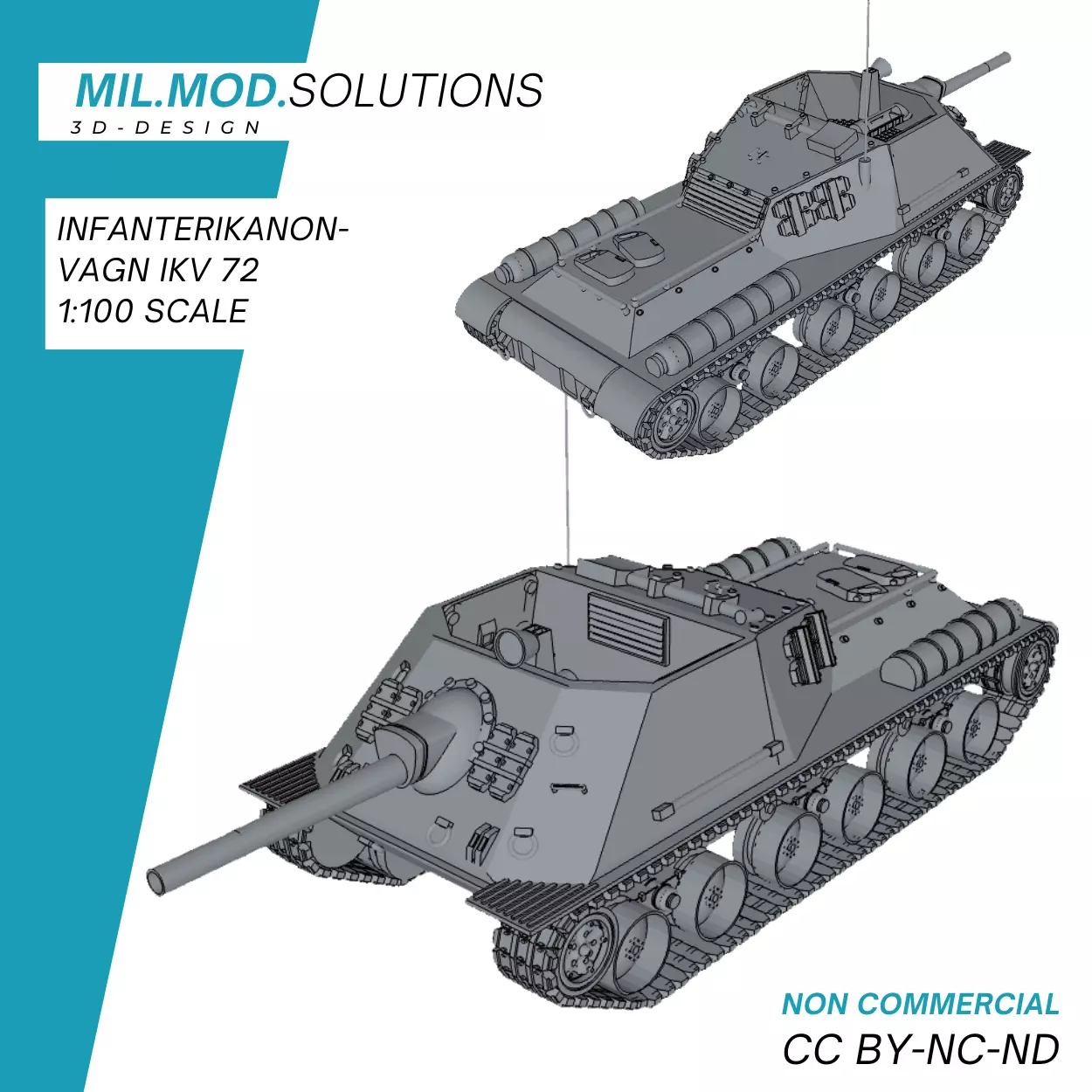 Zum Modell:Die STL-Dateien umfassen mehrere Druckmöglichkeiten des Ikv 72, welche alle auf Basis des Maßstabs 1:100 angefertigt sind.