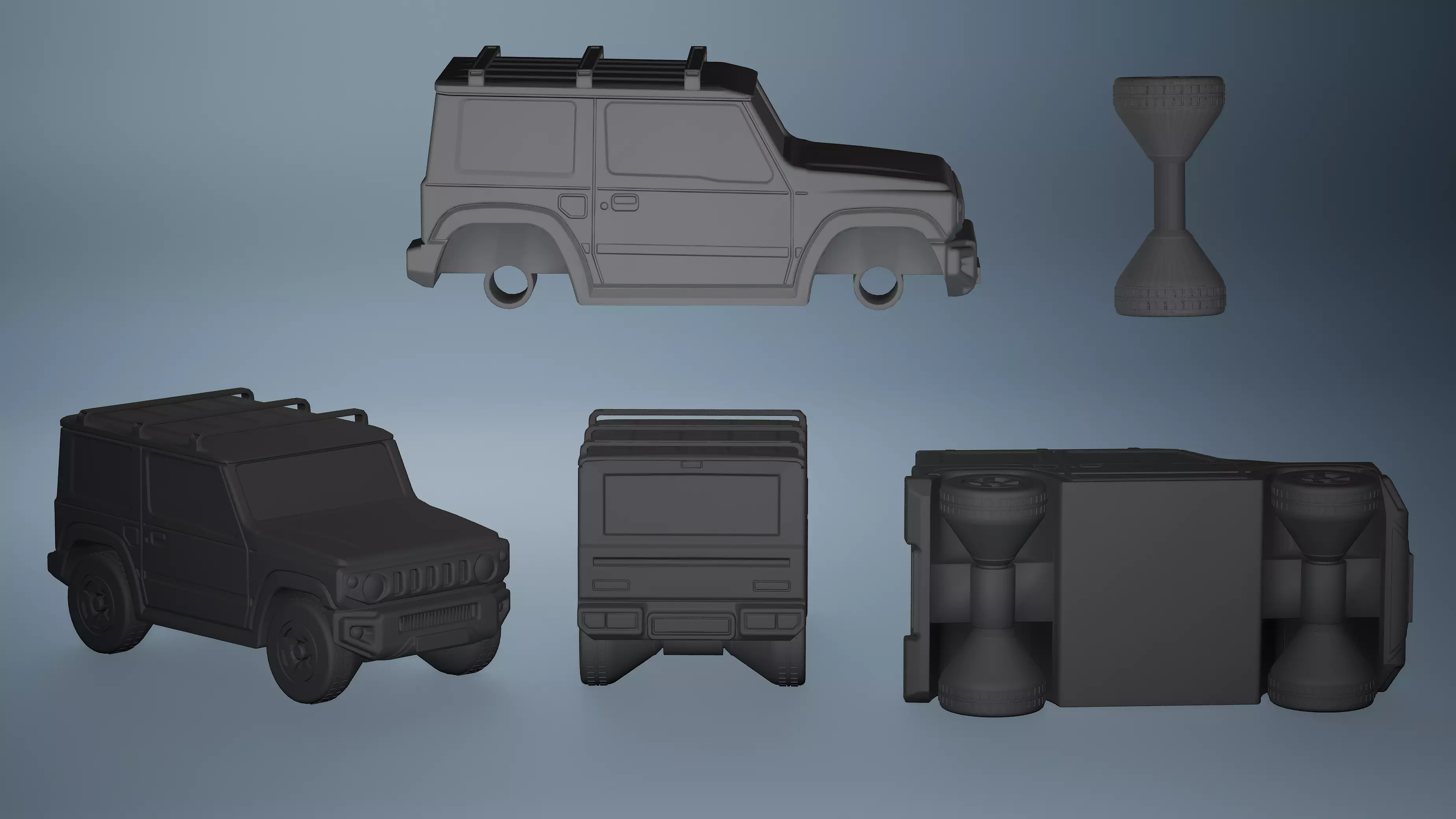 This high-detail Suzuki Jimny model features a fully functional Print-in-Place axle system, allowing the wheels to rotate freely immediately after printing.