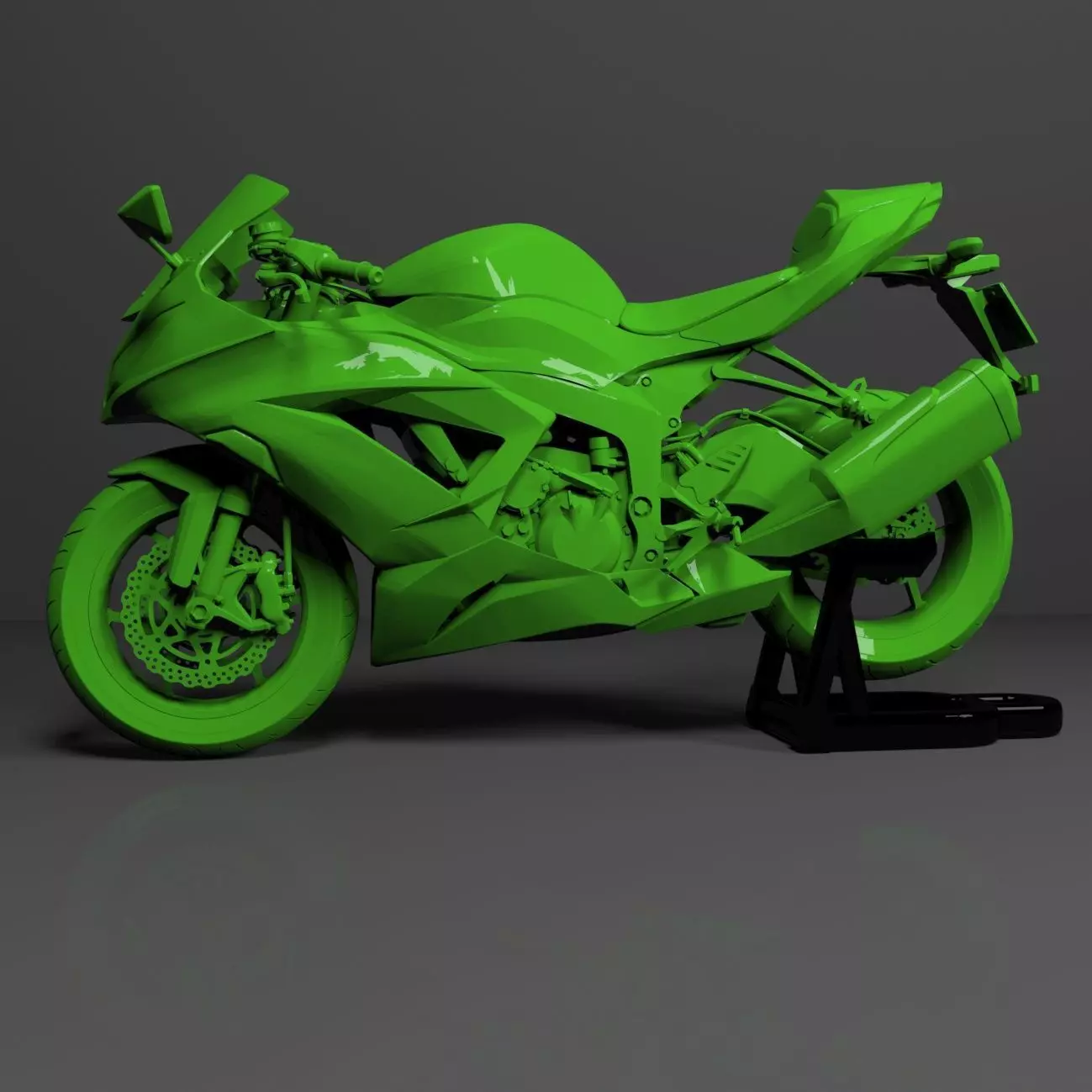 Kawasaki Ninja ZX-6R 636 (ZX636E, ZX636F) 2013-2018 3D printeble model like a real one.If you prefer you can print it as big you wish , model its high quality.I offer the motorcycle a solid model and as parts too(rubber and rims)It has stand too.