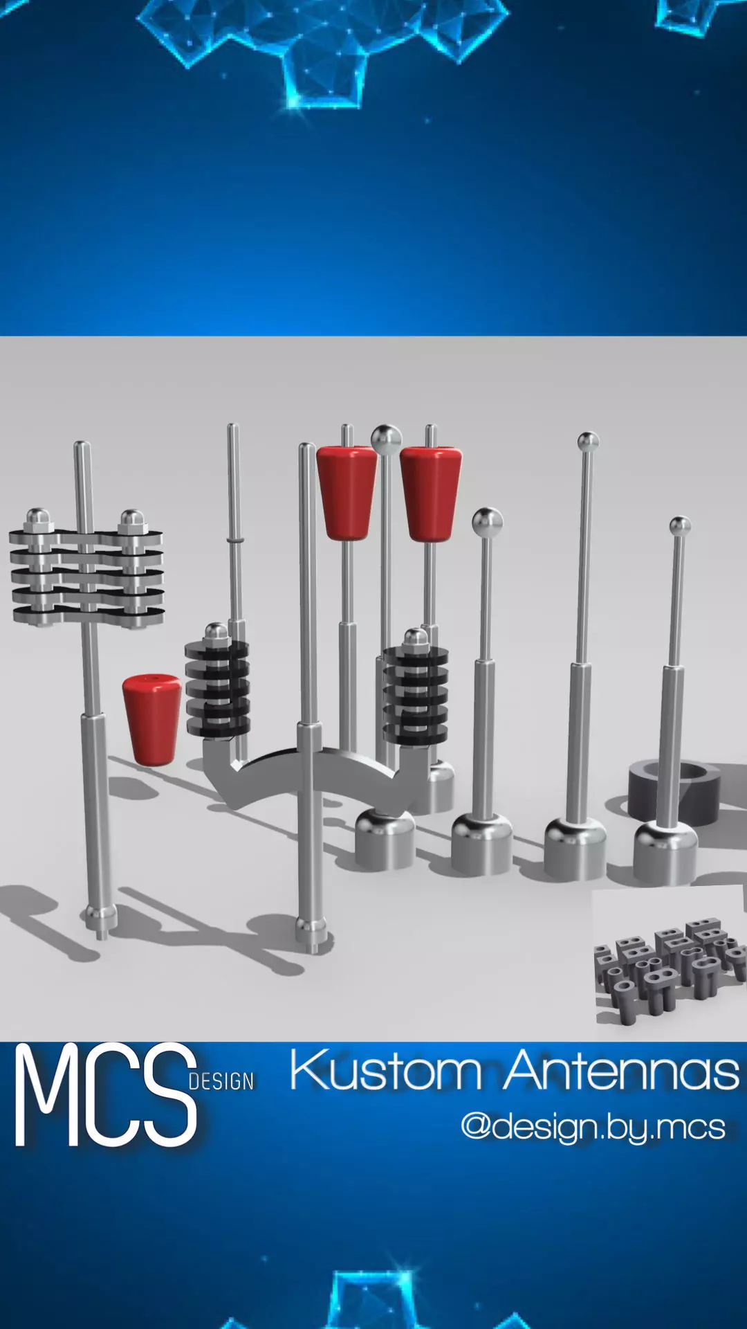 Designed from scratch is a set of Kustom antennas & antenna holes, ideal for kustom bodywork, high in detail, ideal for scale modeling (currently in 1/24 and 1/25 scale).
