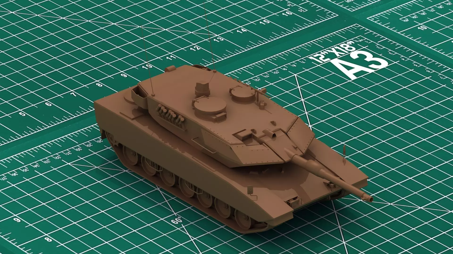 Leopard 2A7 Tank 3D Print model. Item is shown painted in some illustrations. This is a 3D model print file supplied unpainted, not a physical product.