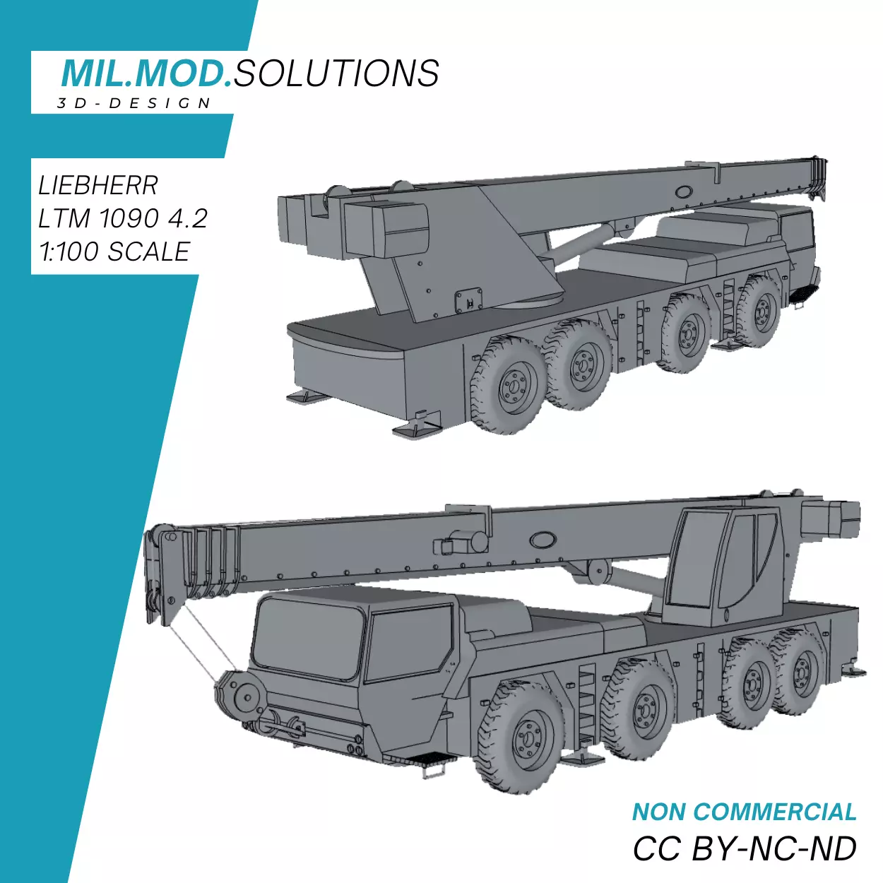 Zum Modell:Die STL-Dateien umfassen mehrere Druckmöglichkeiten des Liebherr LTM 1090 4.2, welche alle auf Basis des Maßstabs 1:100 angefertigt sind.