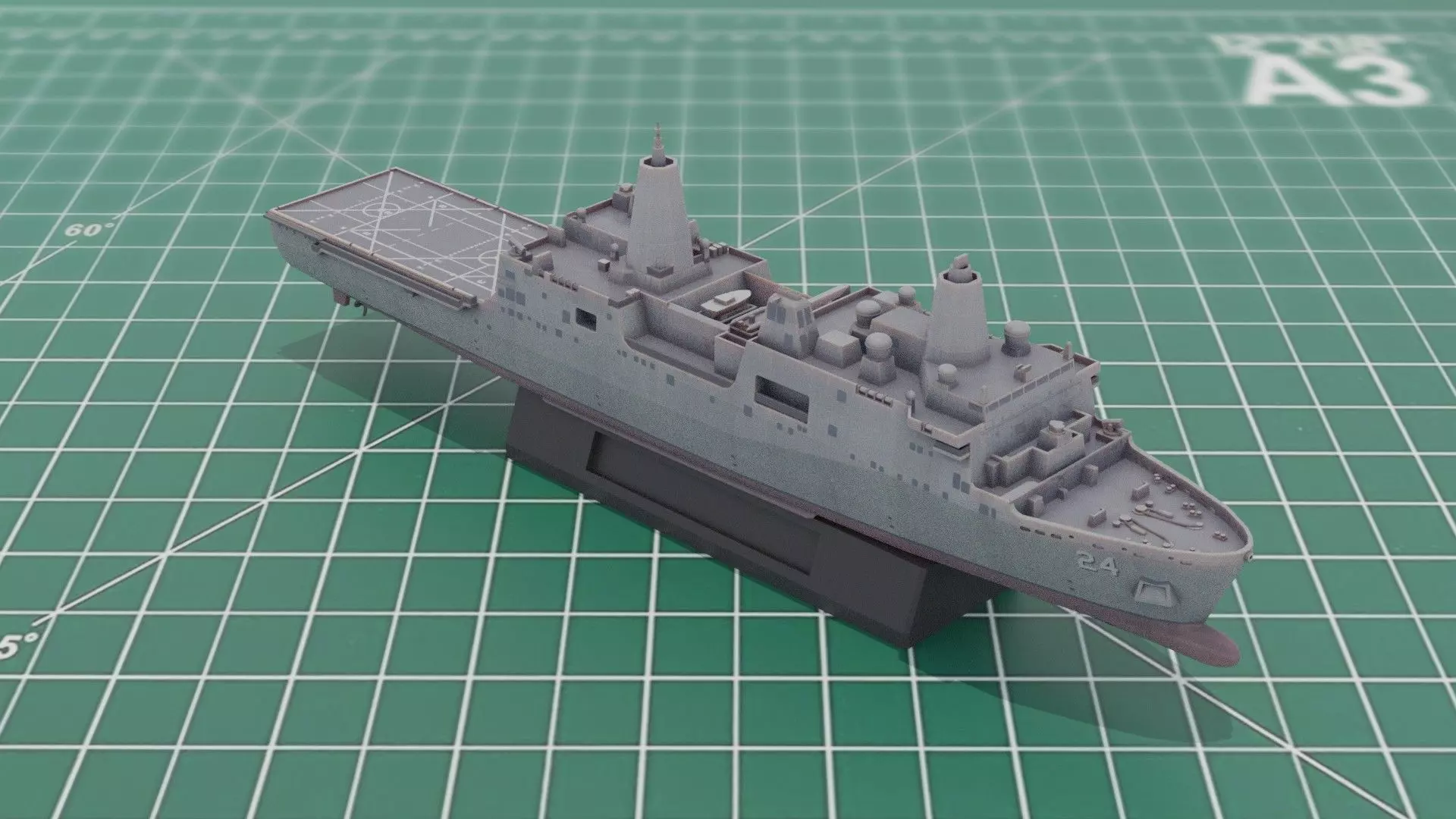LPD-17 San Antonio Class Landing Platform Dock 3D Printer STL Model.For a commercial license to sell hard copies of this model please get in touch. STLs/3MF files are ready to print at 1:1250 scale (approx 16.5cm long). Model may be shown painted in some illustrations. Model is supplied unpainted. Ship is split at waterline, with optional stand, offering several build options (wargame or display model)