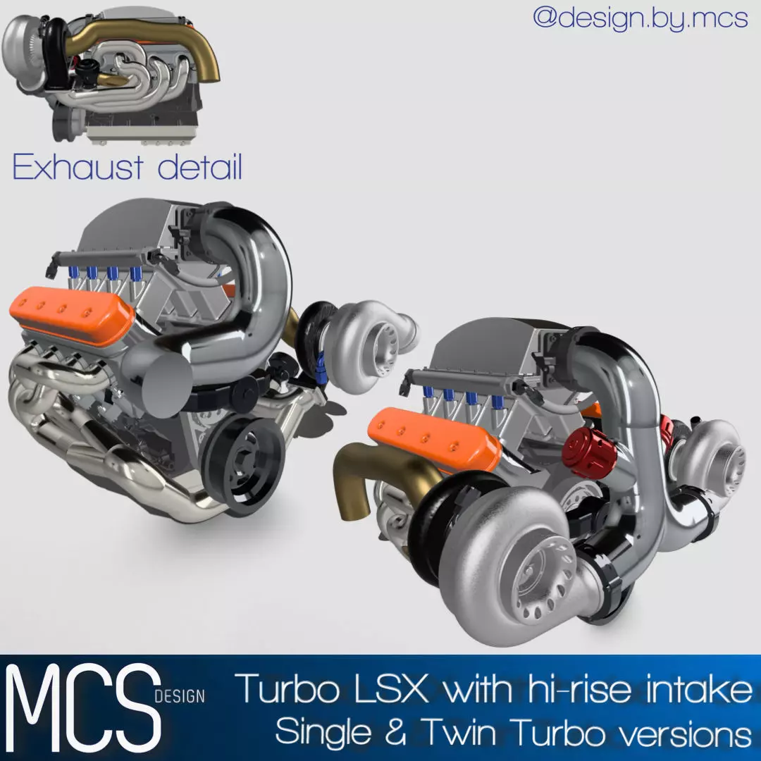 Designed from scratch is an LSX engine set in both a Single turbo setup & Twin Turbo setup, high in detail, ideal for scale modeling (currently in 1/24 and 1/25 scale).