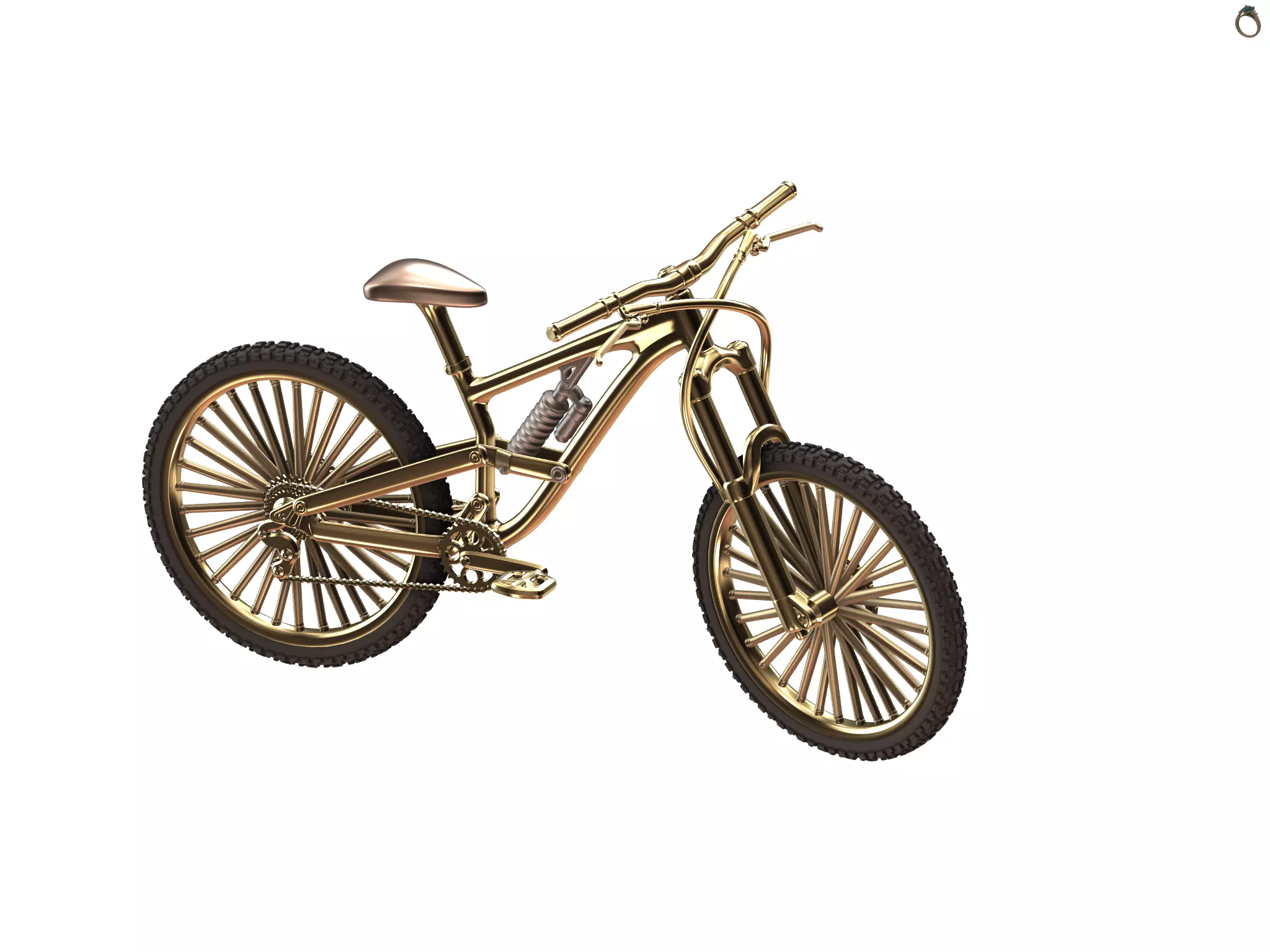 This is a high-detail luxury bicycle 3D model designed with a sculptural, premium aesthetic and optimized for 3D printing. The model features a full-suspension frame, detailed front fork, realistic wheel geometry, and finely modeled mechanical components, giving it a bold, high-end appearance suitable for collectibles, display pieces, or concept prototypes.